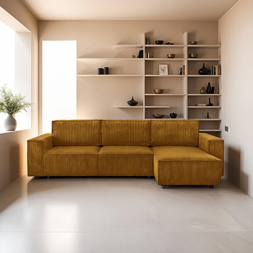 Canapé d'angle convertible réversible 3/4 places en velours côtelé beige - Alva •Confort : Equilibré : accueil moelleux soutien ferme• Couleur Beige• Revêtement : Velours côtelé - - Oekotex - Cigarette test, Résistance à l'abrasion, Solidité de la couleur à la lumière - Tissu Petfriendly : Non•Angle réversible : Adaptez la configuration de votre canapé...