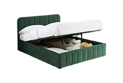 Lit coffre en tissu - Tina• Structure : Contreplaqué issu de bois FSC, métal• Revêtement : Tissu 305 g/m² certifié Oekotex• Couleur : Beige• Avec sommier relevable à lattes et tête de lit• Garnissage : Mousse• Sommier 26 lattes (53x9 mm) en bois de peuplier• Dimensions du couchage : 160 x 200 cm• Dimensions totales : 215 x 170 x 88 cm• Dimensions de la...