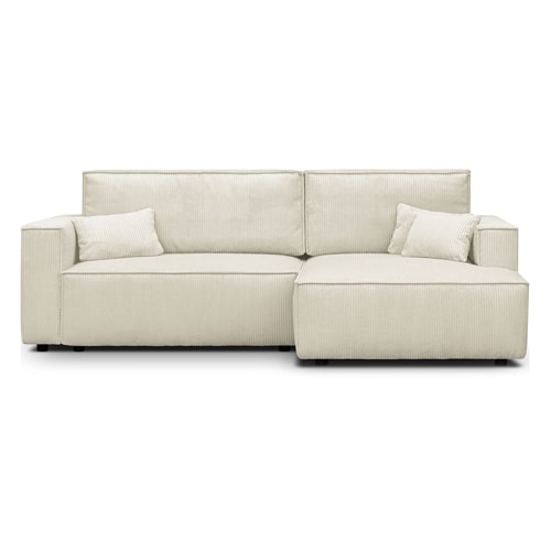 Canapé d'angle convertible 4 places en velours côtelé beige Confort : équilibré : accueil moelleux, soutien ferme Couleur : beige Revêtement : velours côtelé - certifié Oekotex - Petfriendly Angle réversible : adaptez la configuration de votre canapé avec un angle à droite ou à gauche en fonction de vos envies ! Coffre de rangement sous l'assise,...