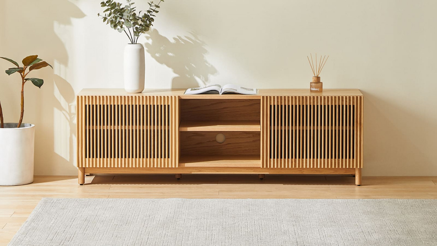 Un meuble TV de 160 cm doit être proportionnel à la taille de votre téléviseur pour garantir un équilibre visuel. Par exemple, si votre téléviseur mesure 75 pouces, un meuble de 160 cm est parfait pour éviter que le téléviseur ne paraisse trop imposant ou trop petit.