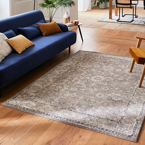 Ce positionnement peut convenir notamment aux tapis de petit format ou aux modèles à motifs forts, que l’on souhaite mettre en valeur sans qu’ils soient partiellement cachés sous les meubles.