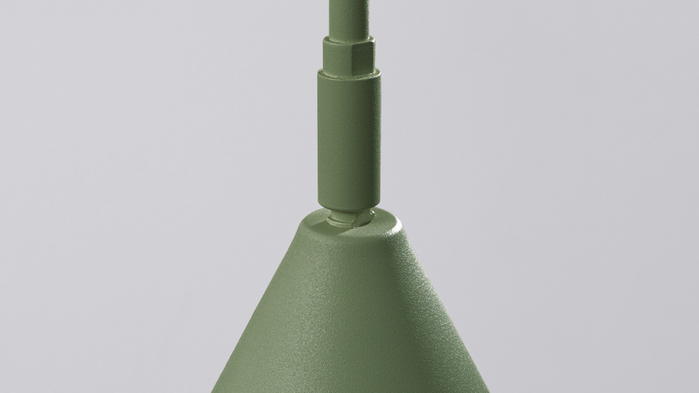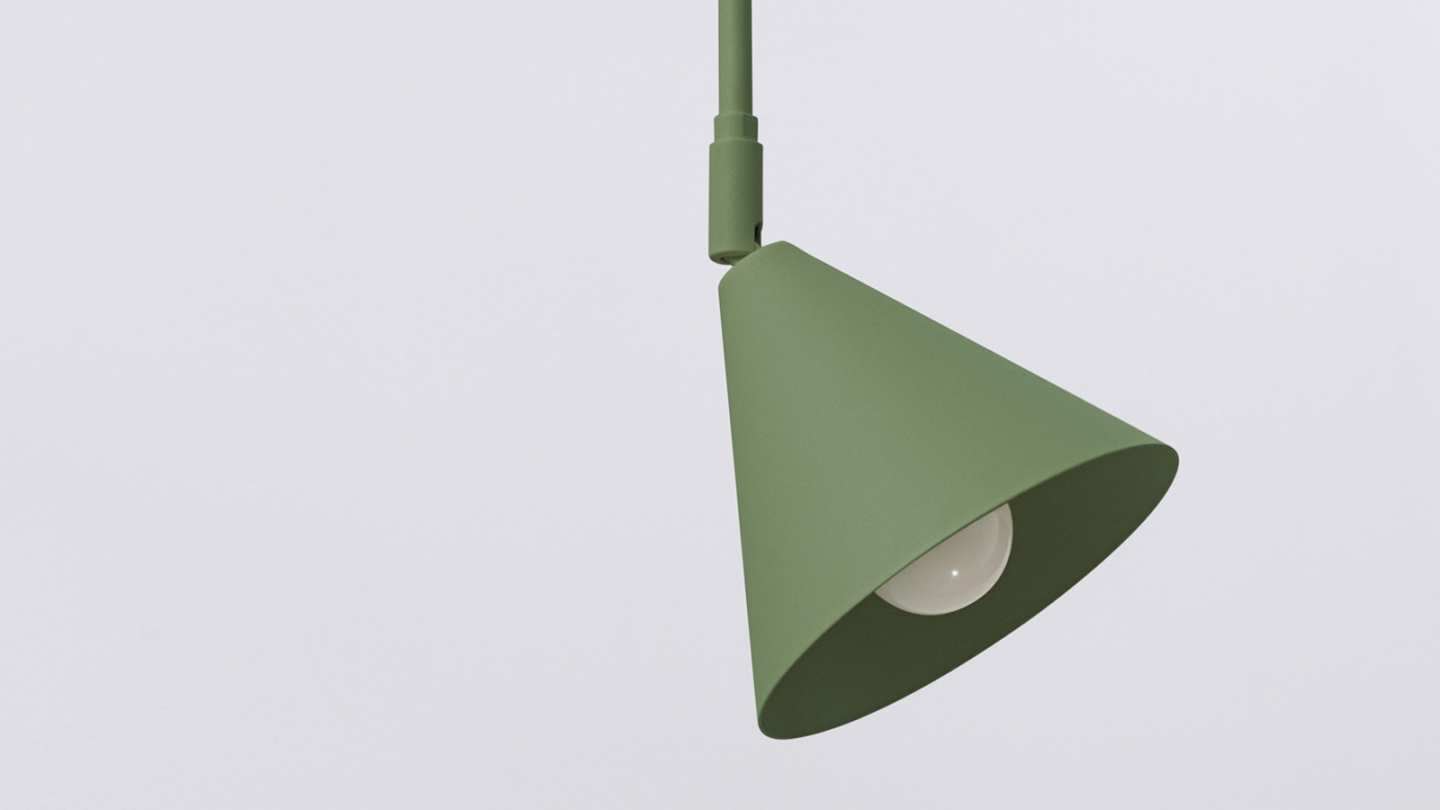 Son bras métallique élancé associé à un abat-jour conique et géométrique crée une silhouette légère, idéale dans un intérieur moderne, scandinave ou industriel.