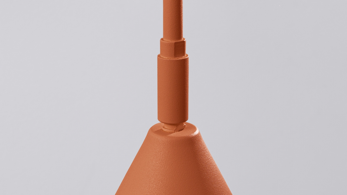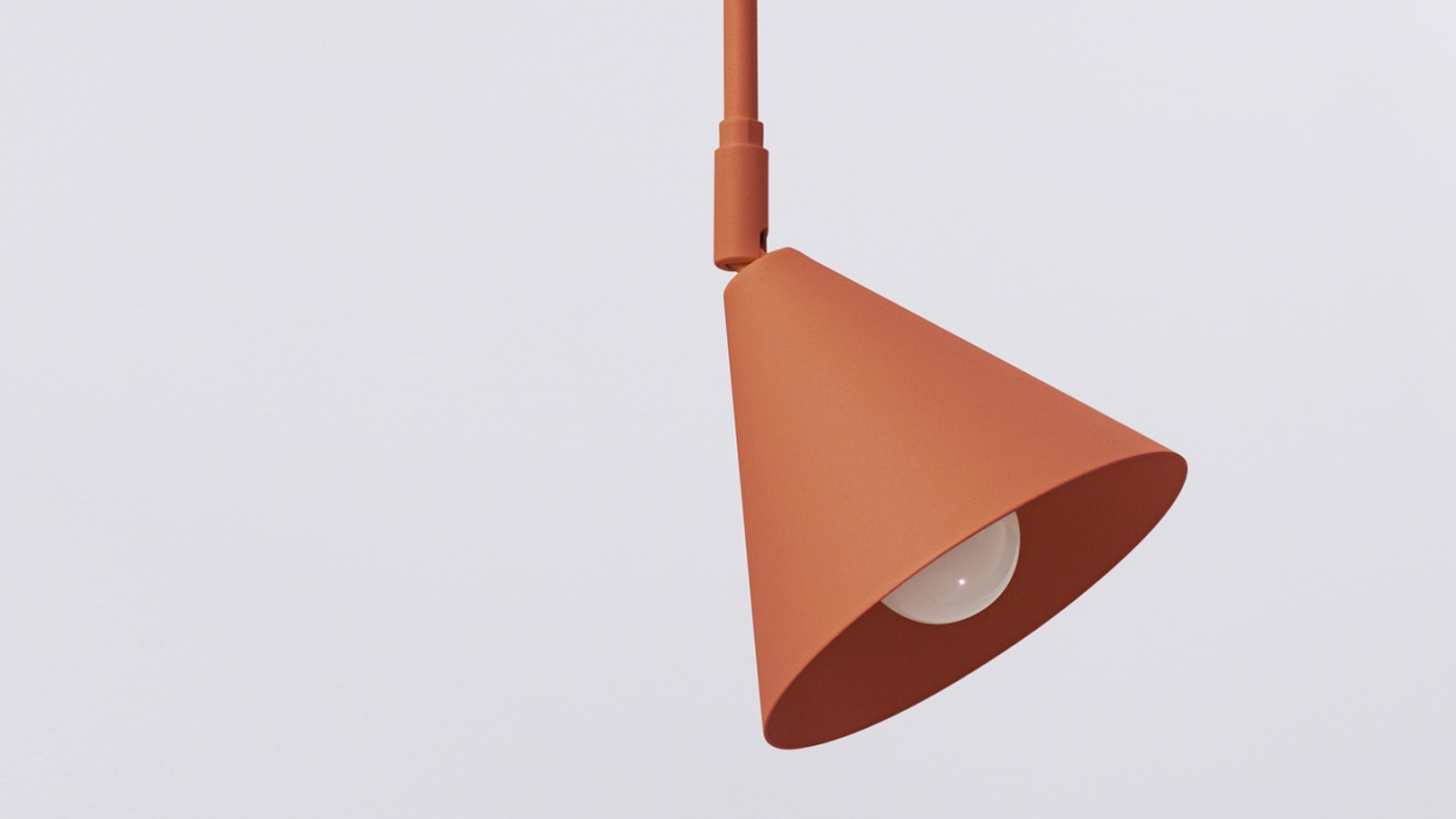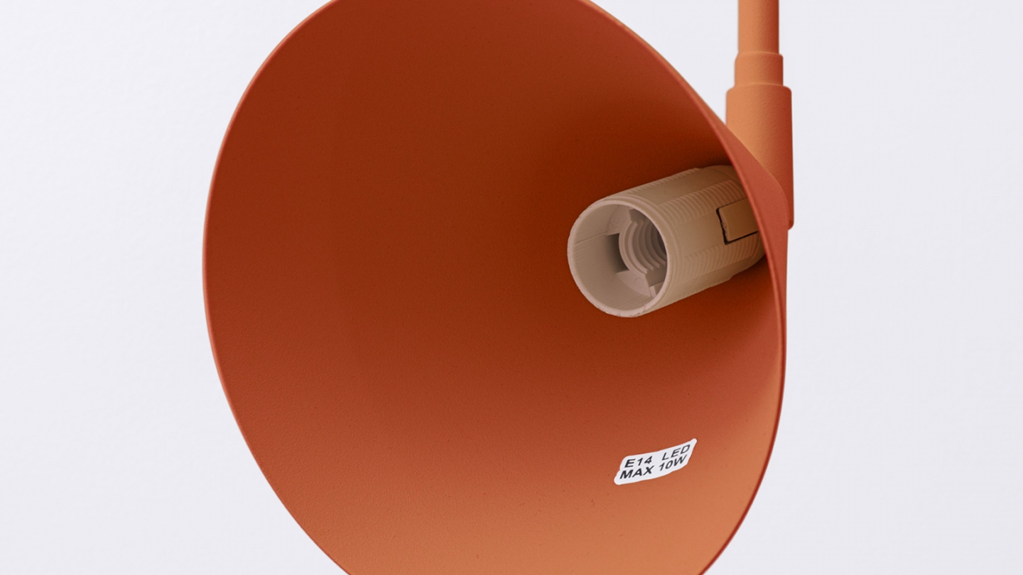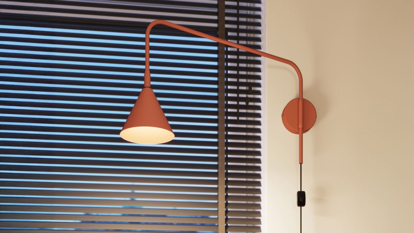 Son bras métallique élancé associé à un abat-jour conique et géométrique crée une silhouette légère, idéale dans un intérieur moderne, scandinave ou industriel.