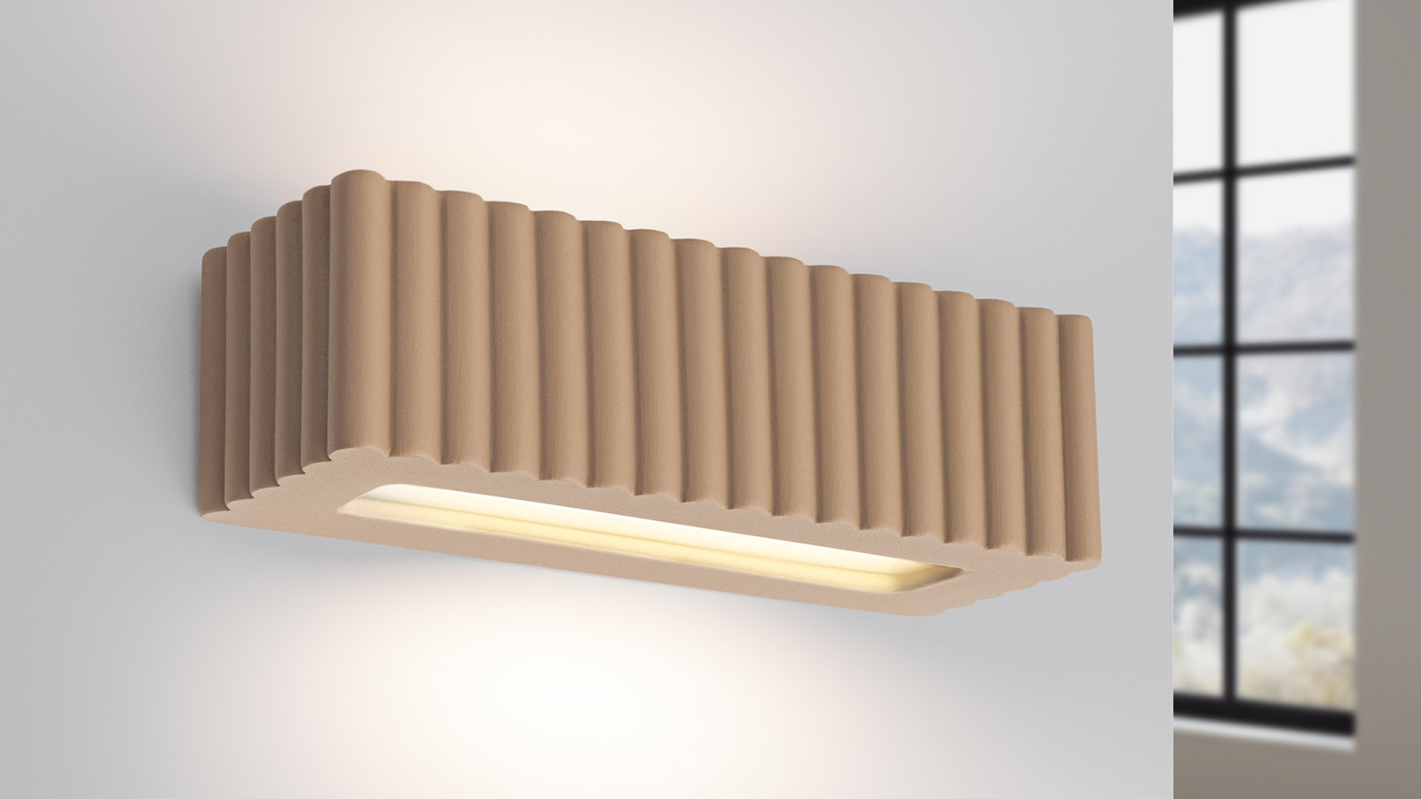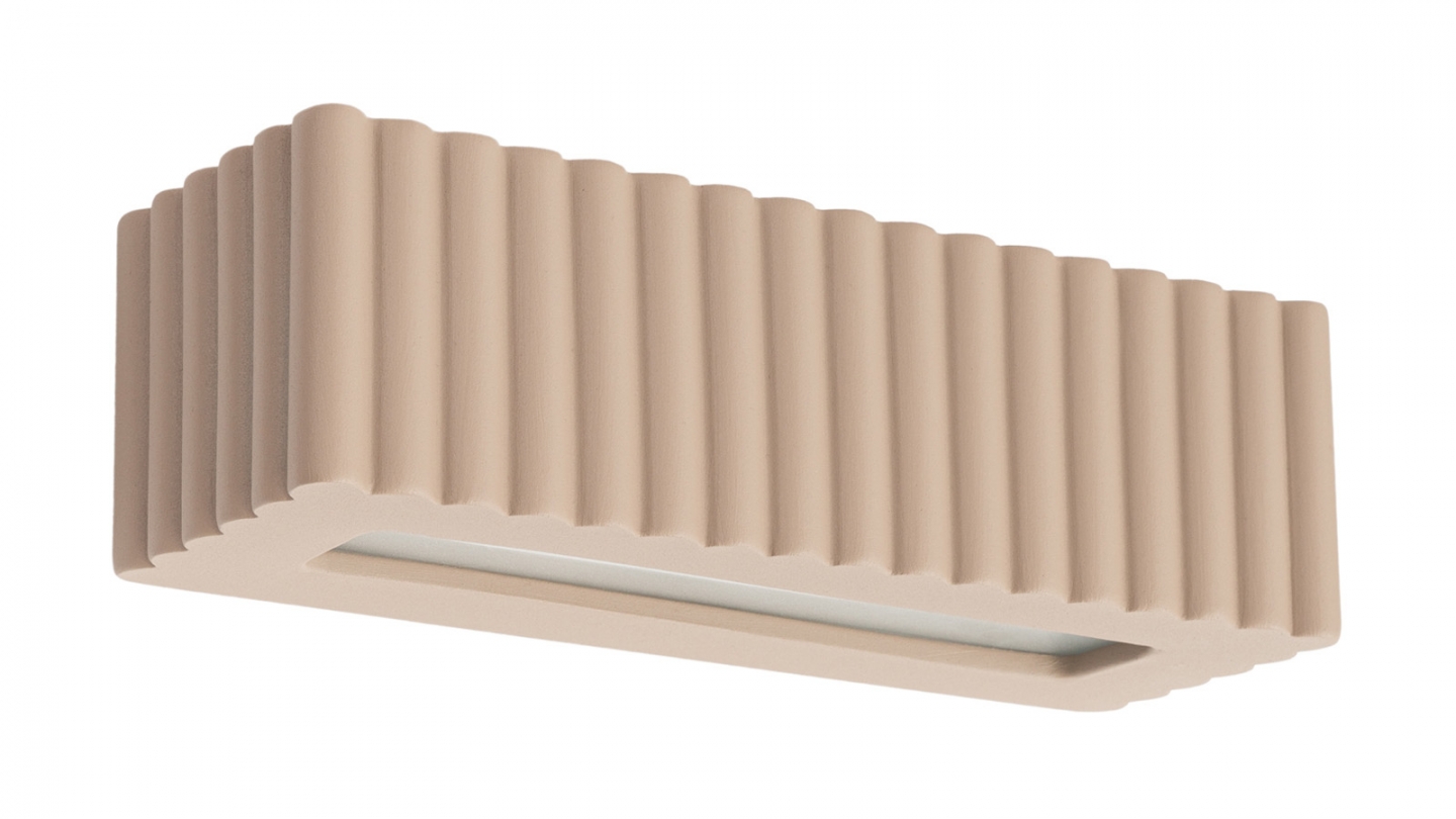 En stockApplique rectangulaire en céramique cannelée beige - Rigata L'applique murale RIGATA associe simplicité des formes et élégance fonctionnelle.Sa structure en céramique cannelée diffuse la lumière de manière homogène et crée une atmosphère chaleureuse et accueillante. Disponible en blanc, beige, taupe, vert olive et outremer, RIGATA s’intègre aussi bien...
