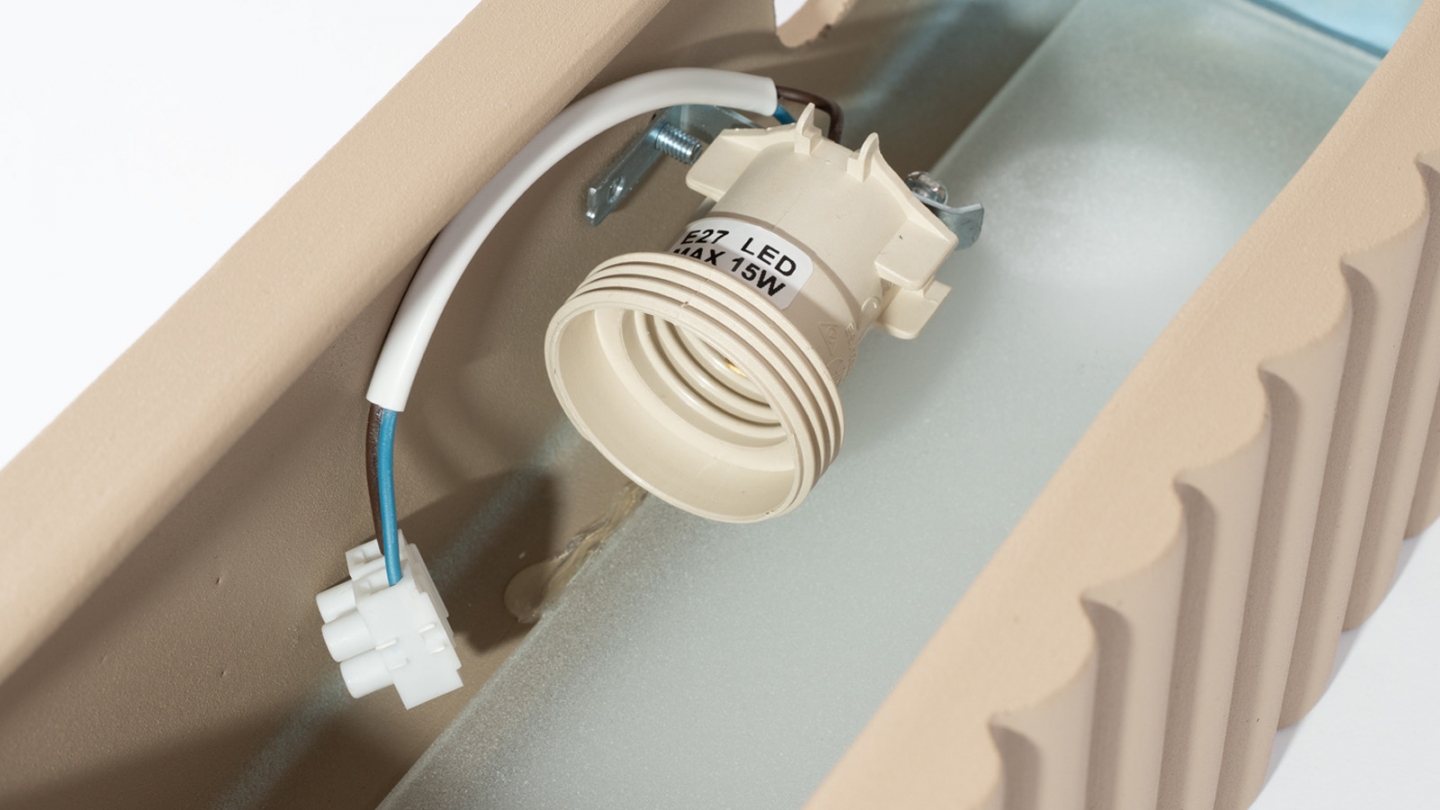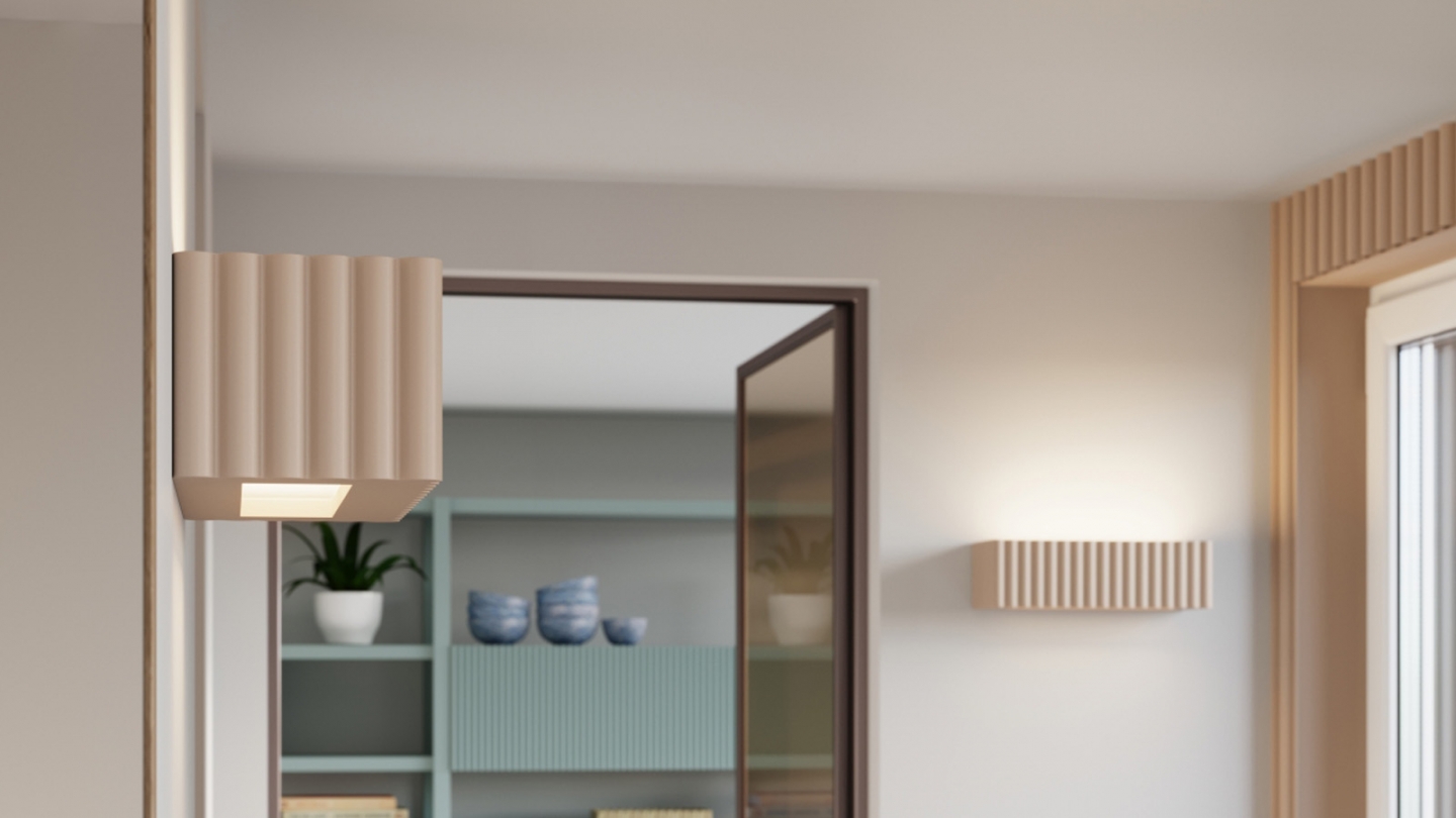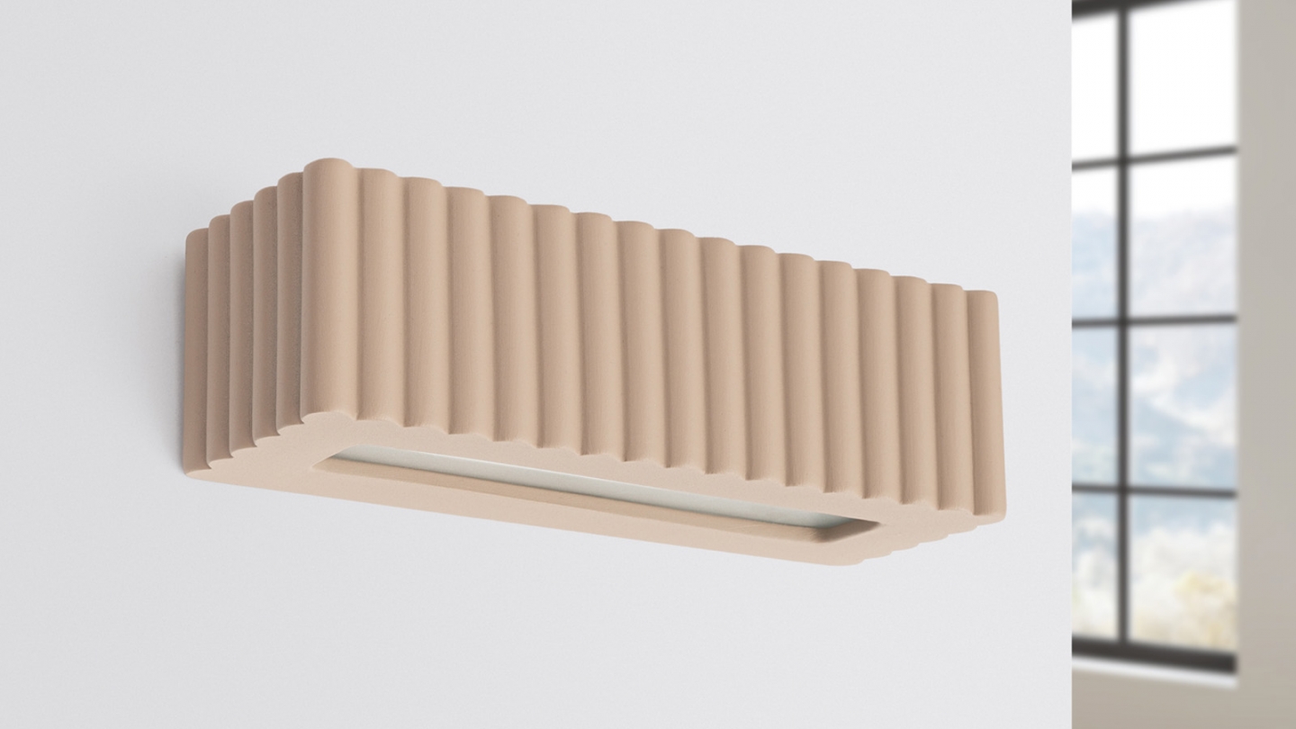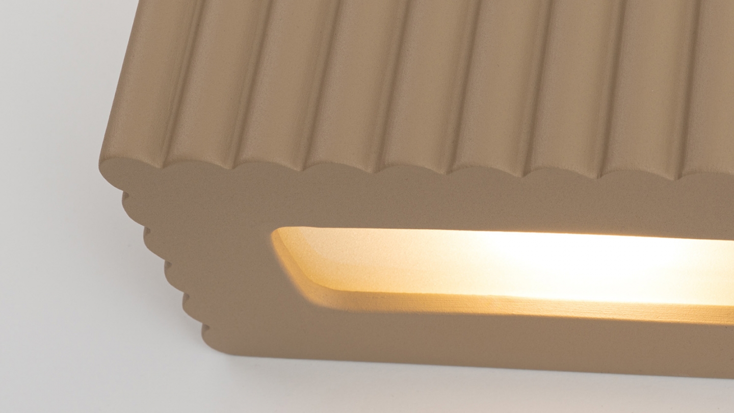 Sa structure en céramique cannelée diffuse la lumière de manière homogène et crée une atmosphère chaleureuse et accueillante.