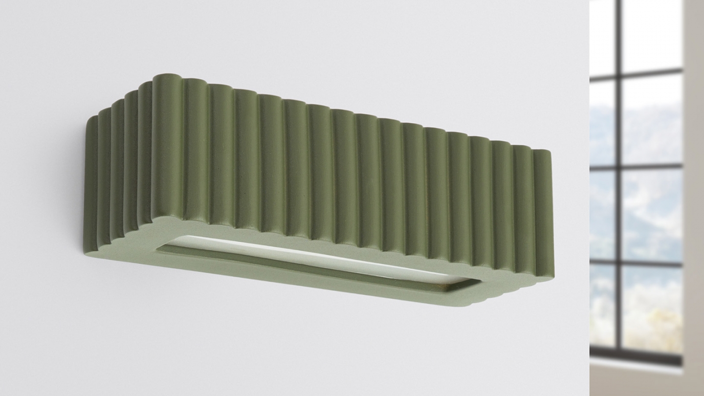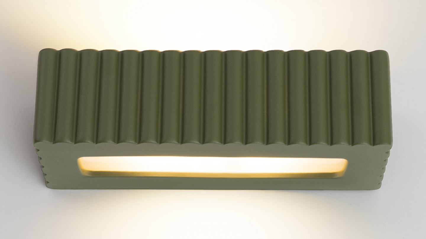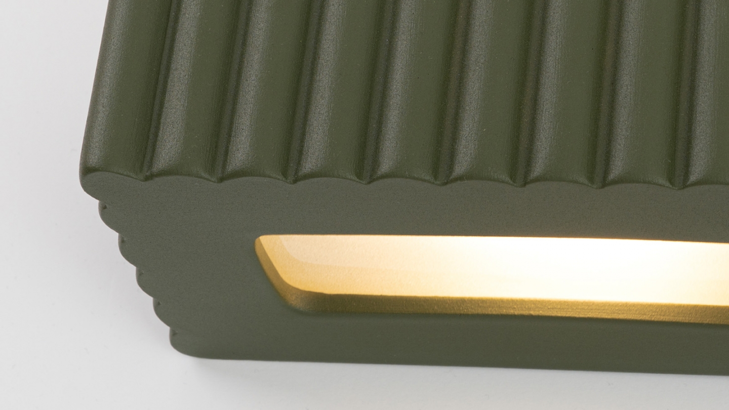 Applique rectangulaire en céramique cannelée vert olive - Rigata