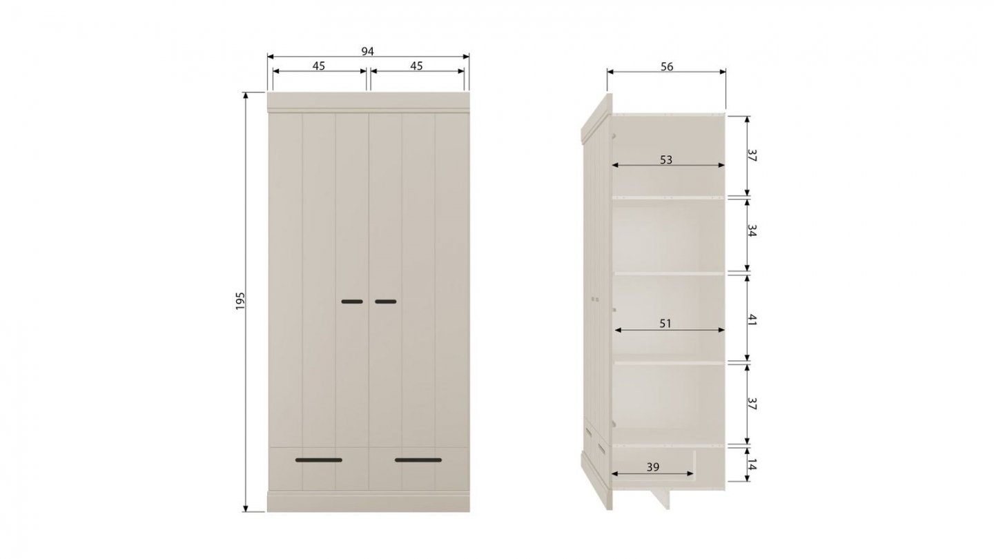 • Style rétro • Armoire 2 portes• 2 poignées• 1 étagère de rangement• Fabriqué en pin massif• Couleur : anthracite• FSC Mixte - Bois géré durablement• Dimensions : 195 x 94 x 53• Garantie 2 ans