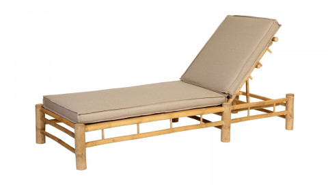 En stock• Style naturel• Chaise longue• Tablette rétractable• Structure : teck massif• Assise et dossier en tissu• Couleur : taupe• 2 roulettes• Dimensions : 198 x 63 x 35 cm• Garantie 2 ans