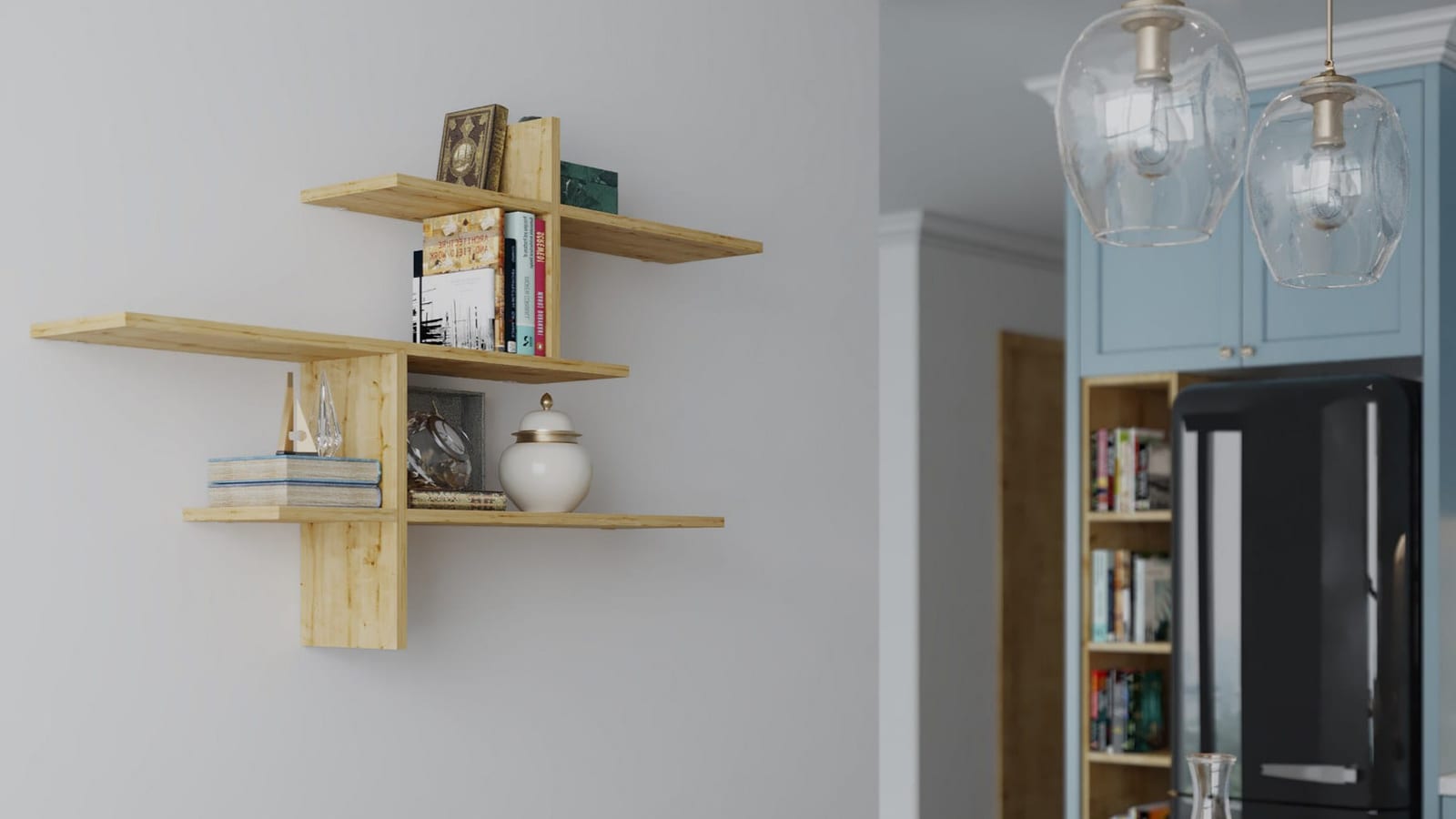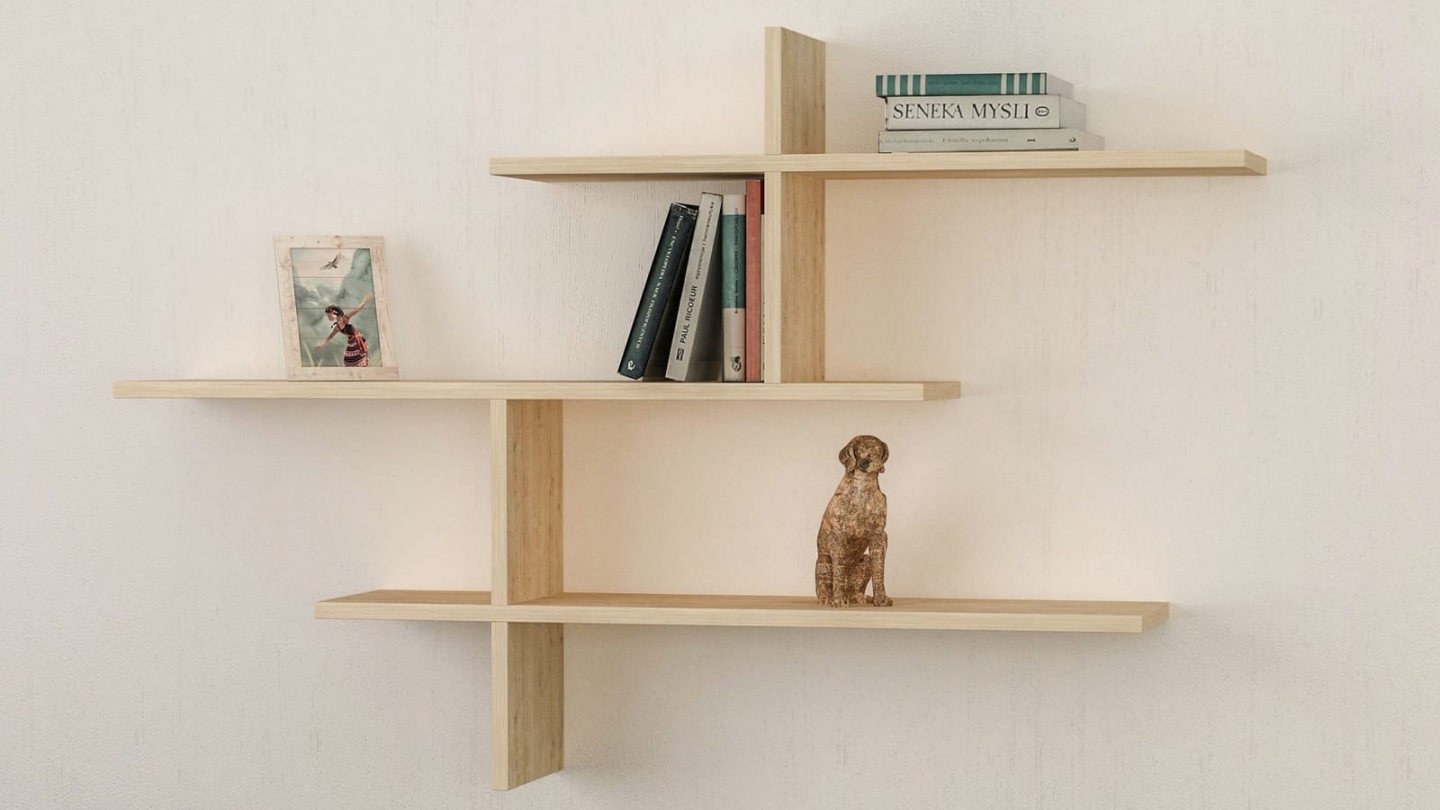 • Étagère murale au design géométrique asymétrique, parfaite pour habiller un mur avec style tout en offrant un rangement aérien et décoratif. A fixer au mur.