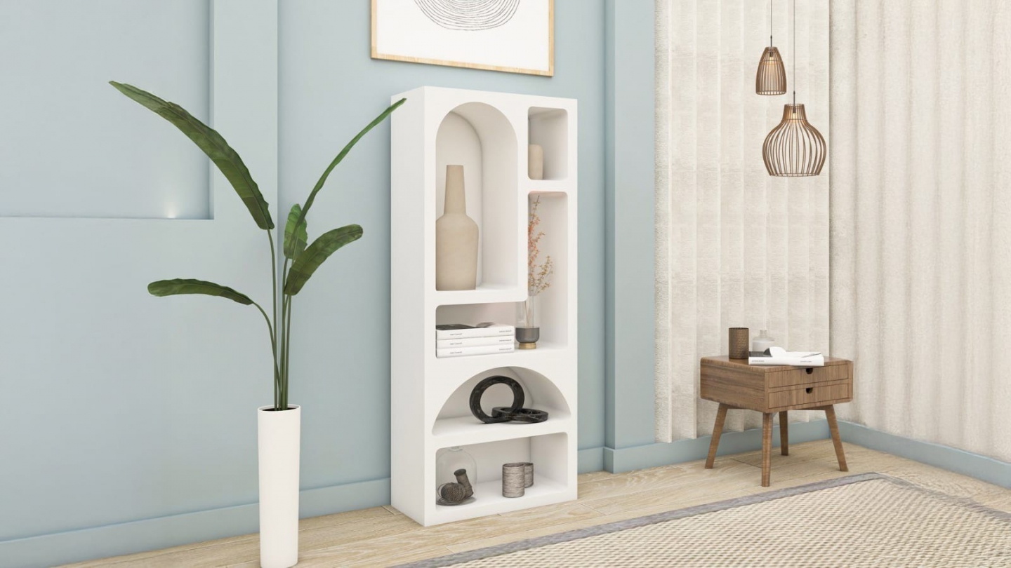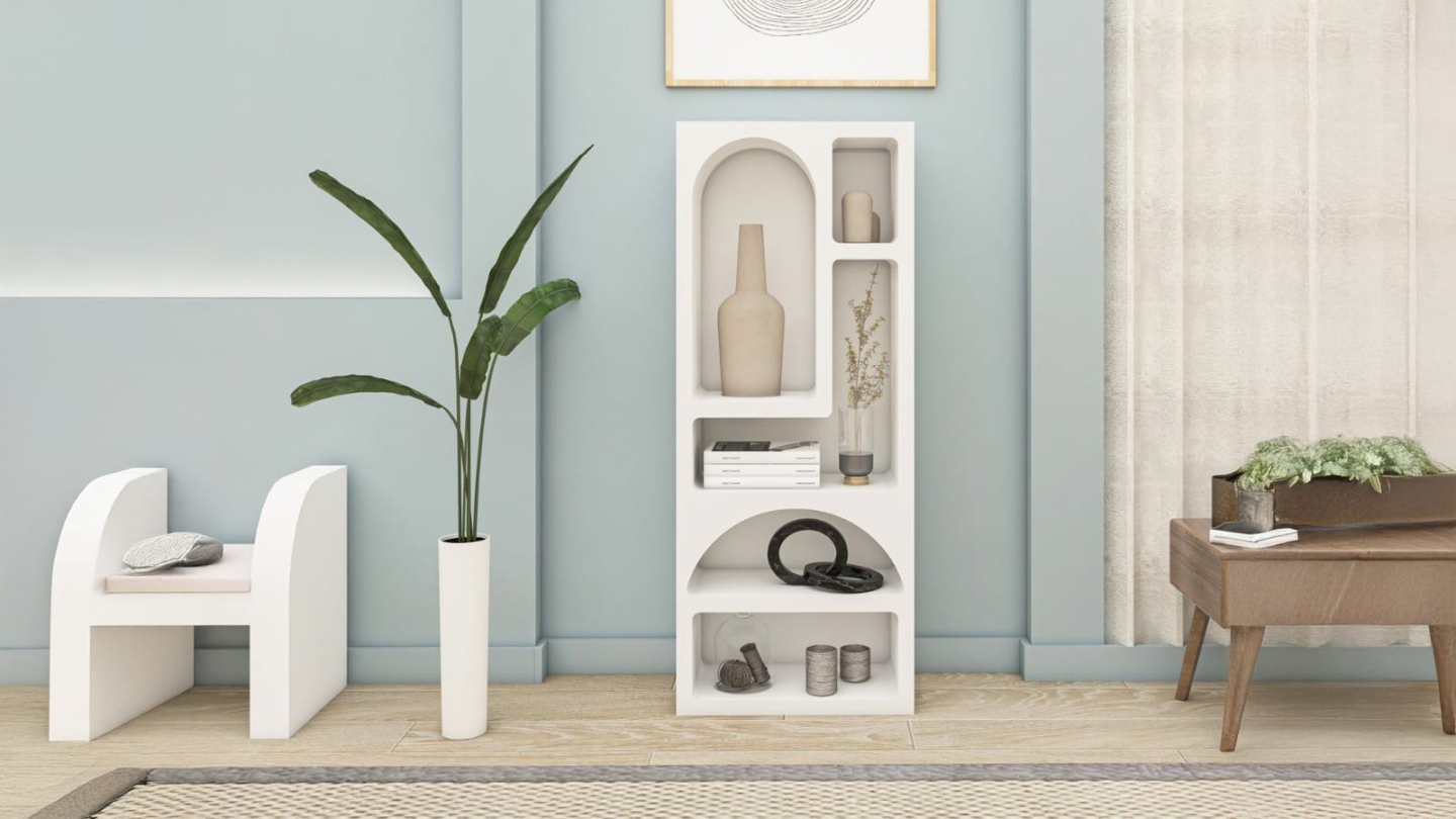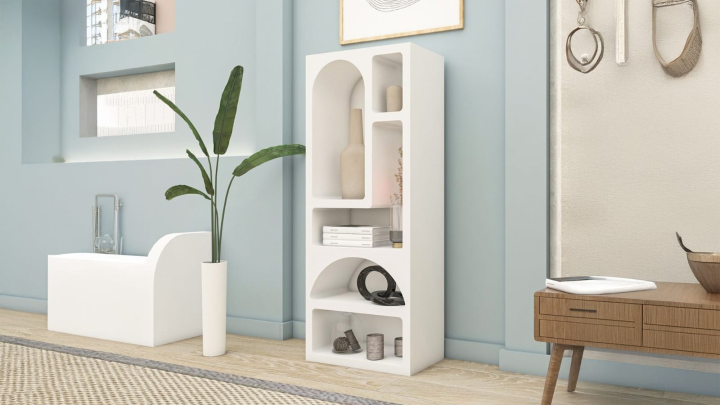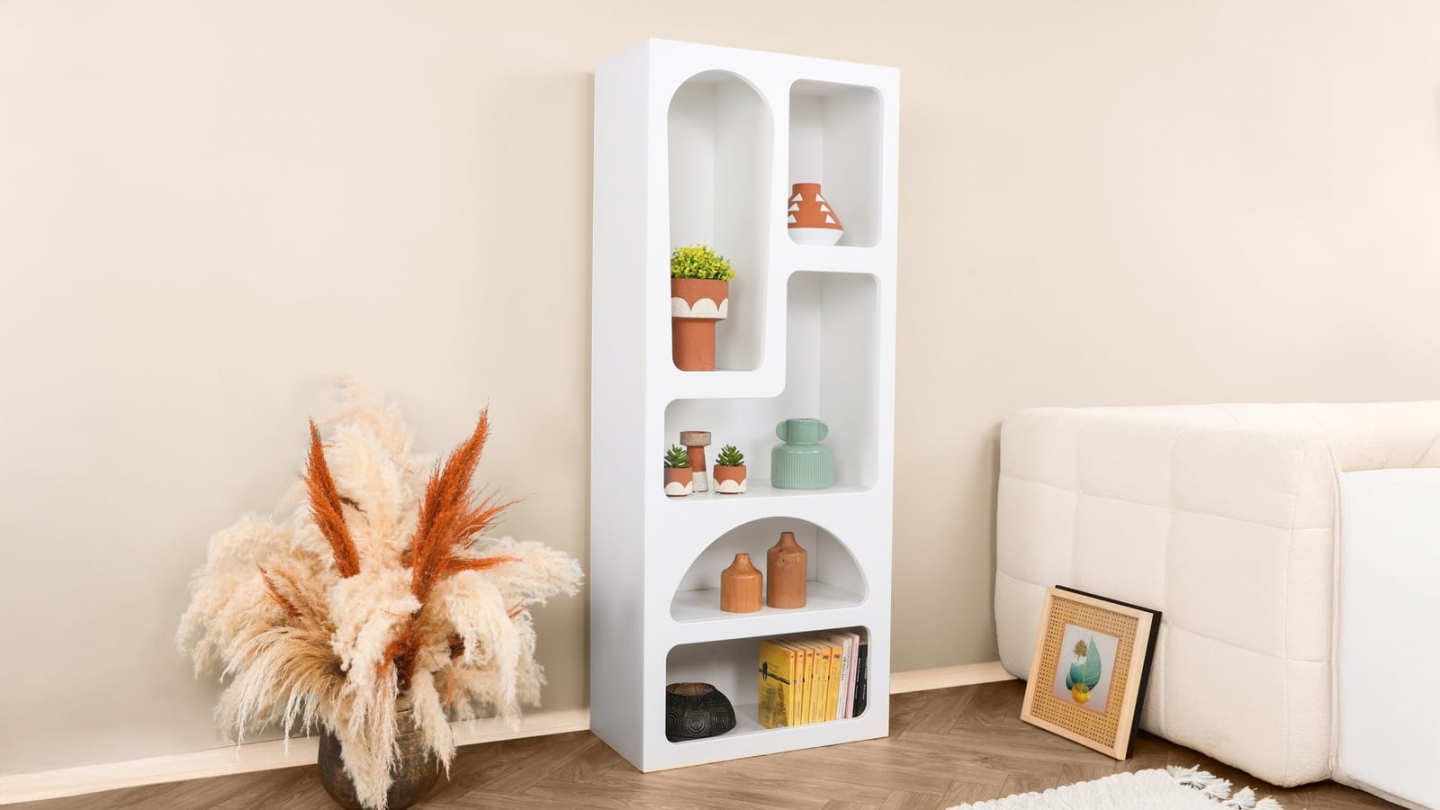 • Étagère design aux niches arrondies, alliant lignes douces et esprit contemporain pour sublimer la décoration.