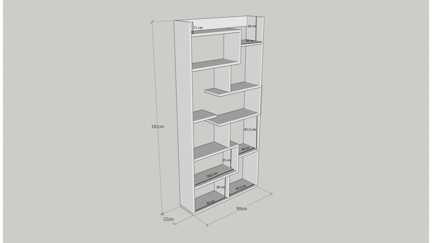 Bibliothèque à niches asymétriques - Riva• Matière : Mélamine• Couleur : Effet bois• Bibliothèque au design géométrique original, parfaite pour exposer livres et objets déco tout en structurant élégamment l’espace.• Rangements : 10 niches• Dimensions totales : 90 x 22 x 182 cm