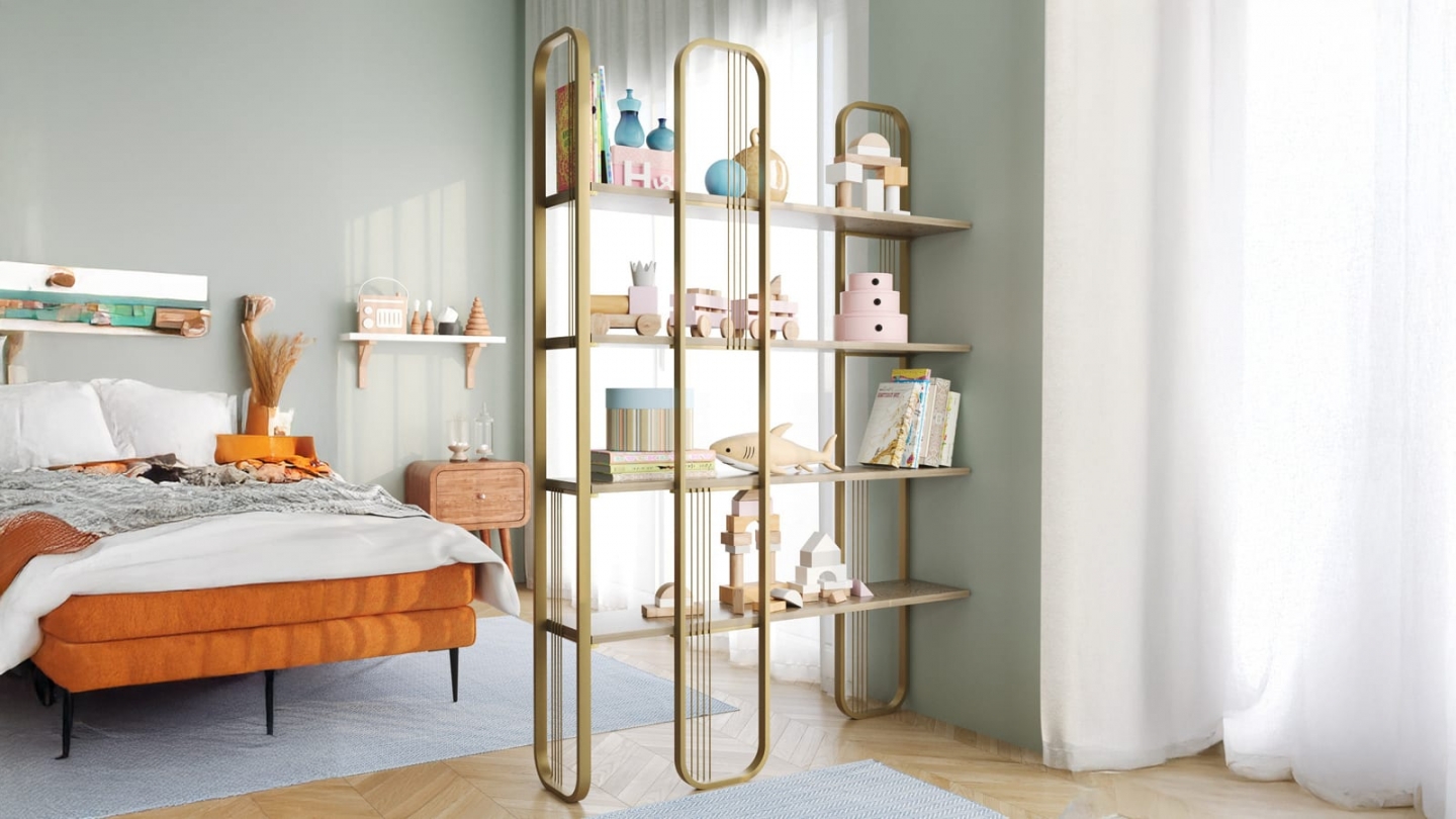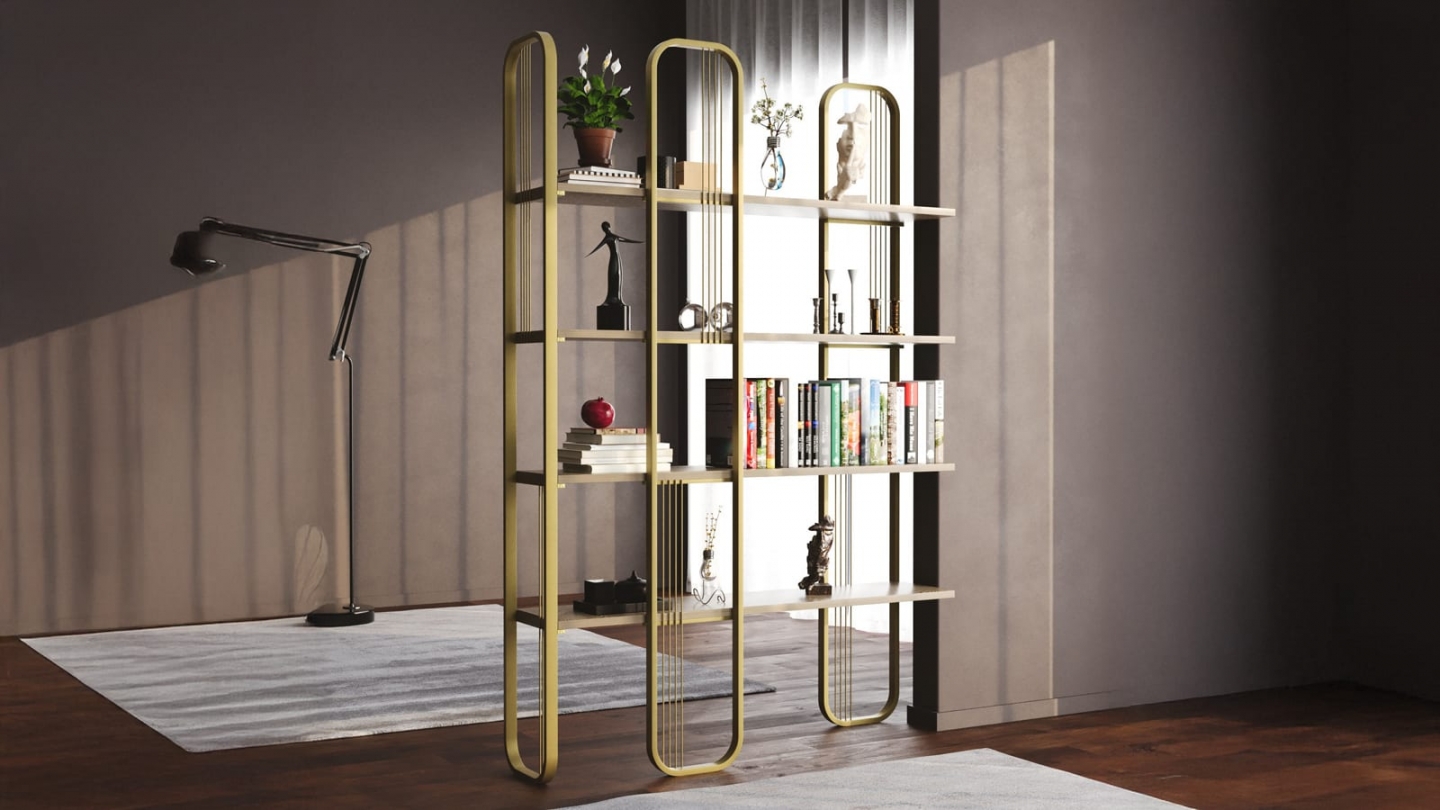 • Étagère design à structure métallique arrondie, alliant lignes graphiques et légèreté pour une décoration contemporaine.