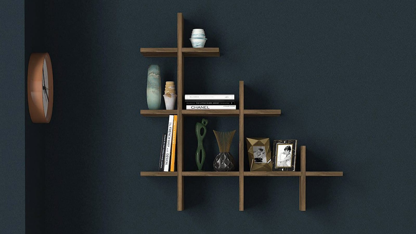 • Design géométrique original, parfait pour exposer livres et objets déco tout en habillant le mur avec style. A fixer au mur.