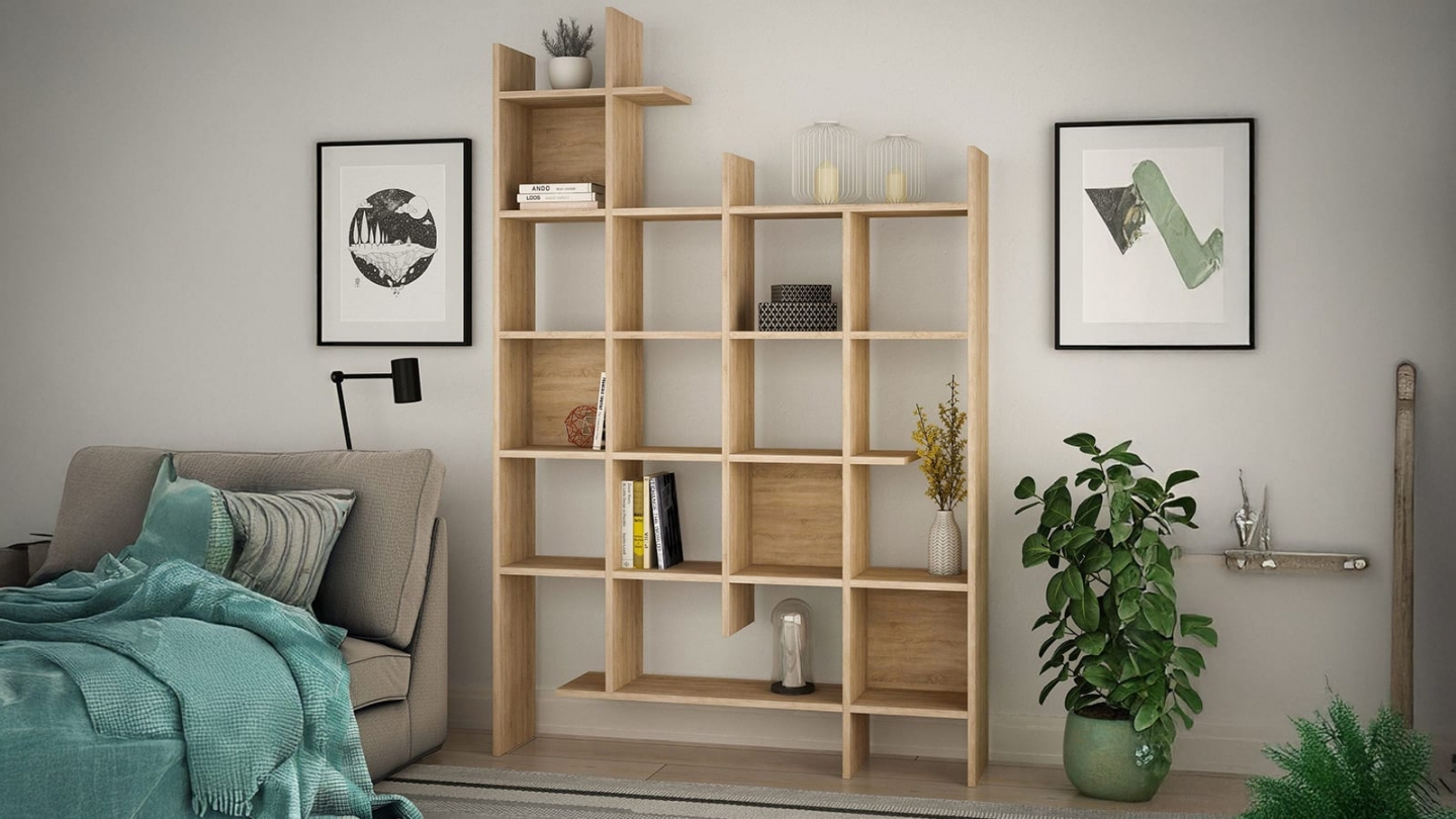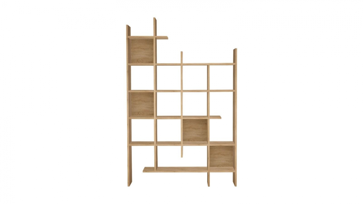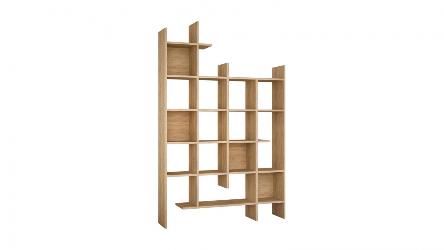 • Étagère design à la structure géométrique et déstructurée, idéale pour exposer livres et objets tout en apportant une touche moderne au salon.