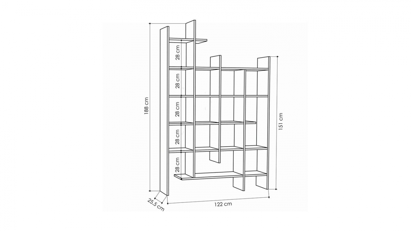 • Dimensions des étagères : Espacement entre les étagères : 28 cm