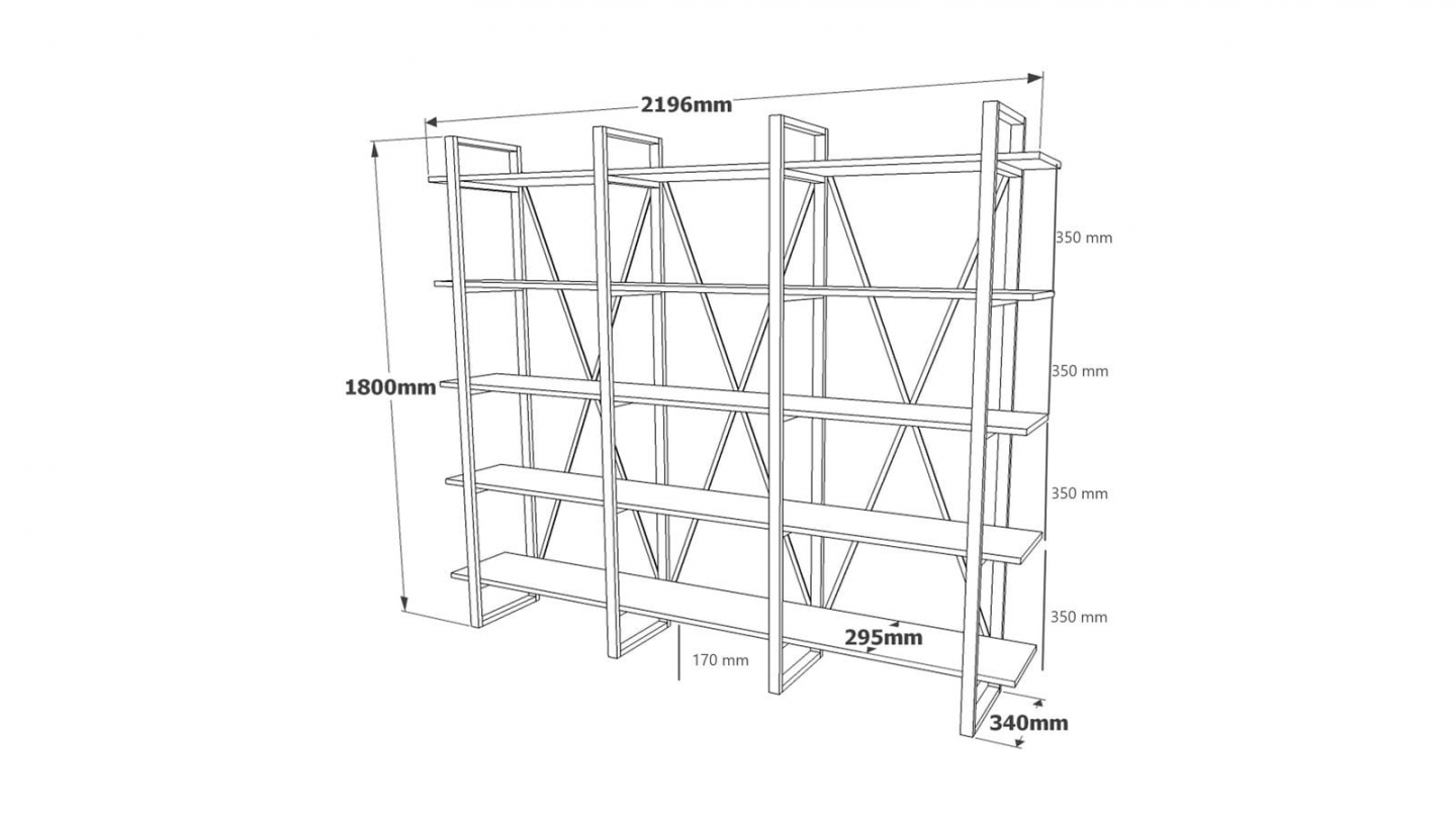 • Dimensions des étagères : 219,6 x 29,5 cm - Espacement entre les étagères : 35 cm