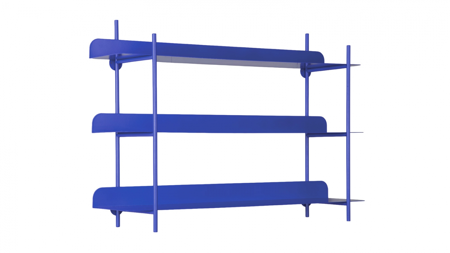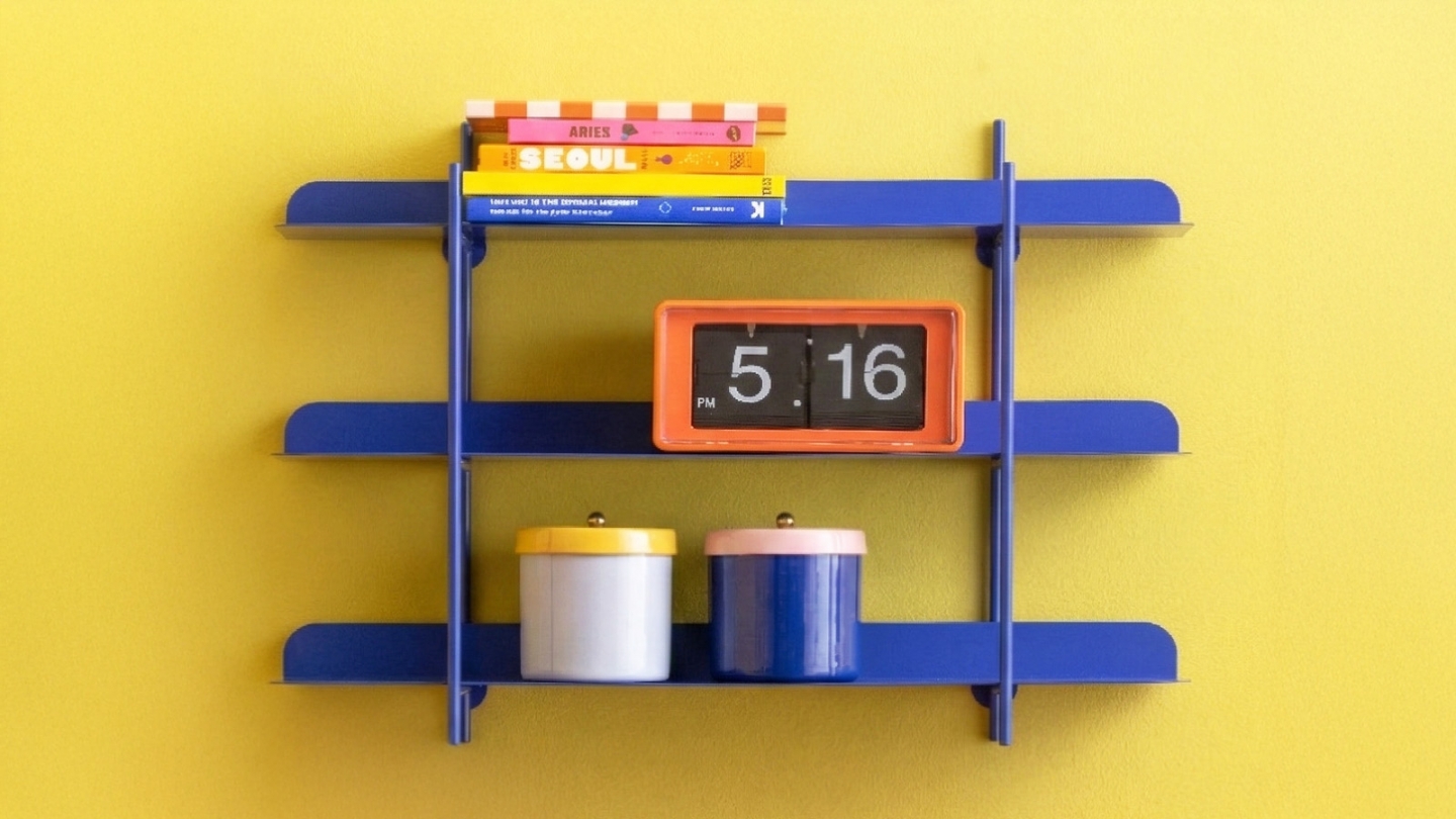Une étagère murale en métal au look rétro graphique (H 42 cm × P 16 cm), parfaite pour exposer vos trésors et organiser vos espaces avec style.