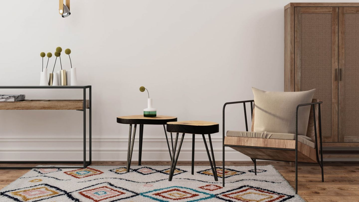 Dans un salon, devant un canapé, le modèle de tapis berbère multicolore John apporte une ambiance chaleureuse, aussi bien dans un intérieur exotique moderne, avec une palette de couleur réduite et des tonalités claires, que dans un intérieur coloré où il se fond à la perfection. Sa texture agréable en fait un bel ornement dans une chambre, en descente de lit, ou dans une salle à manger, pour donner du style et de la convivialité. Les seconds motifs de tapis marocain s’inspirent de l’Azilal, qui est un modèle de tapis graphique très coloré. Ce style est idéal pour donner une touche de couleur à une chambre ou un salon neutre.