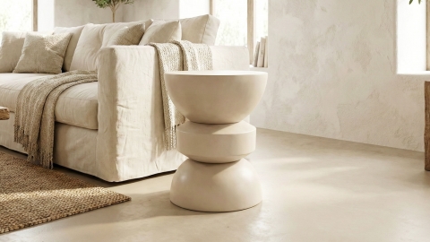 Décliné ici dans une finition beige mat, Elin diffuse une atmosphère lumineuse et apaisante, facile à associer à différents styles d’intérieur. Son aspect minéral et sa texture mate renforcent son caractère décoratif tout en restant discret. Grâce à son format compact, il peut être utilisé aussi bien comme bout de canapé que comme table de chevet, offrant une surface idéale pour poser une lampe, un livre ou les objets du quotidien.