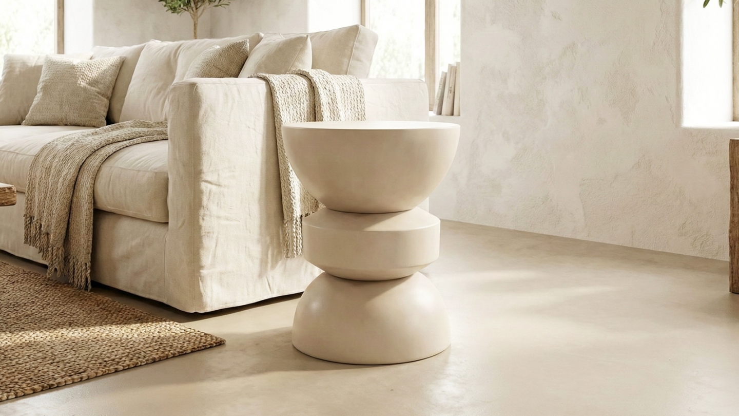 Bout de canapé - Ori• Matière : Résine• Couleur : Beige mat• Volumes pleins et silhouette compacte• Dimensions totales : 24 x 24 x 41 cm• Poids net : 4 kg