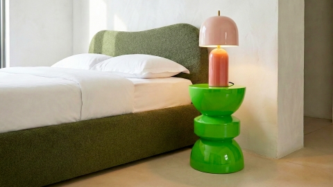 Décliné ici dans une finition vert brillant, Elin diffuse une atmosphère lumineuse et apaisante, facile à associer à différents styles d’intérieur. Son aspect minéral et sa texture brillante renforcent son caractère décoratif tout en restant discret. Grâce à son format compact, il peut être utilisé aussi bien comme bout de canapé que comme table de chevet, offrant une surface idéale pour poser une lampe, un livre ou les objets du quotidien.