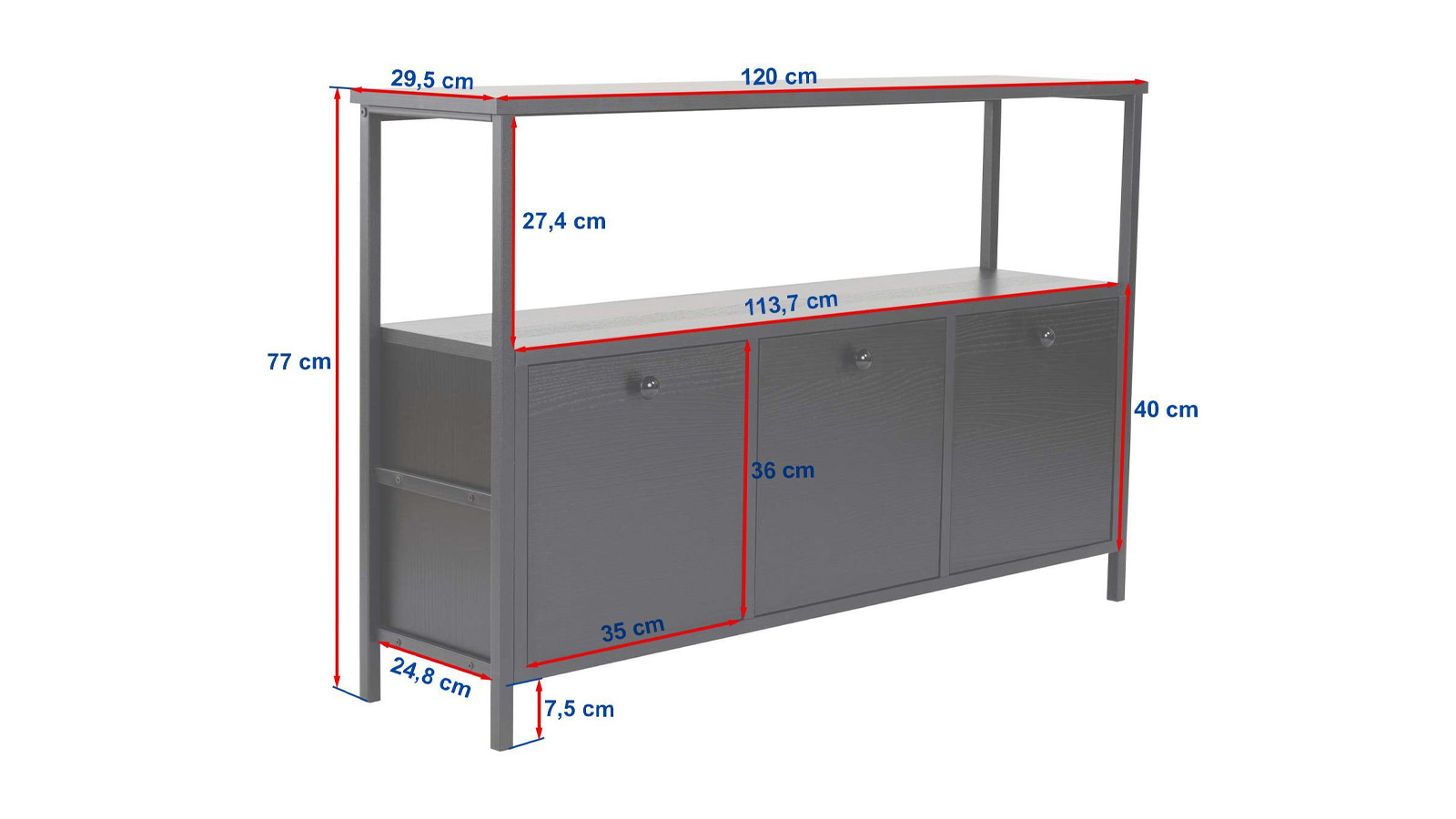 • Dimensions totales : 120 x 29.5 x 77 cm