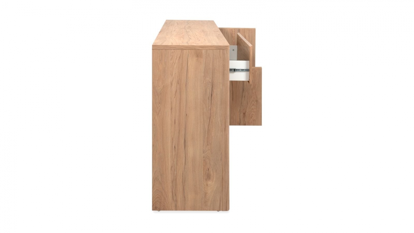 Rupture de stock• Buffet en pin massif• 1 porte coulissante - 3 tiroirs• Matière : pin massif• Couleur : bois• Dimensions totales : 150 x 40 x 80 cm