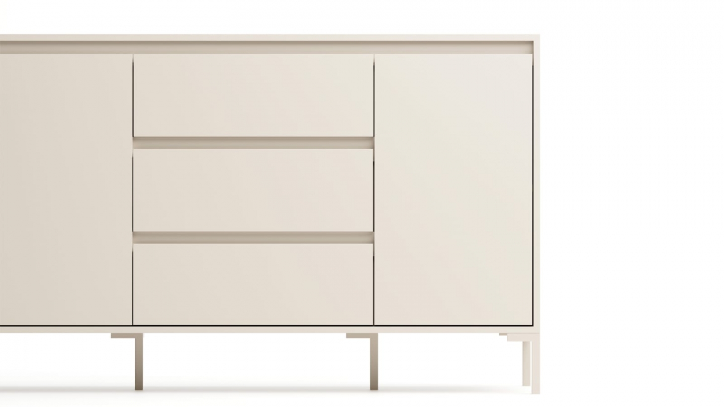 Rupture de stock• Buffet 3 portes à lattes ajourées• Structure en MDF et placage en bois massif chêne et frêne• Couleur : naturel• Porte en bois massif • Pied réglables en bois massif (10cm)• Dimensions totales : 160x40x65cm