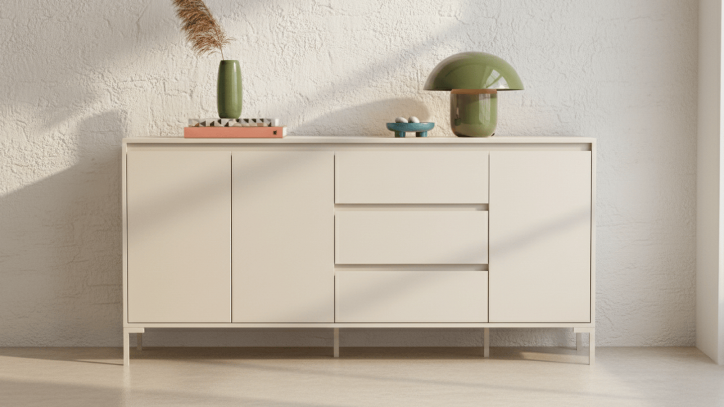 • Petit buffet 3 portes 3 tiroirs 170 cm• Matière : panneaux de particules, mélaminé• Couleur : Naturel effet chêne• 3 portes, 2 tablettes et 3 tiroirs• Piétement en Métal• Dimensions totales : 170 x 40 x 80 cm• Garantie 2 ans