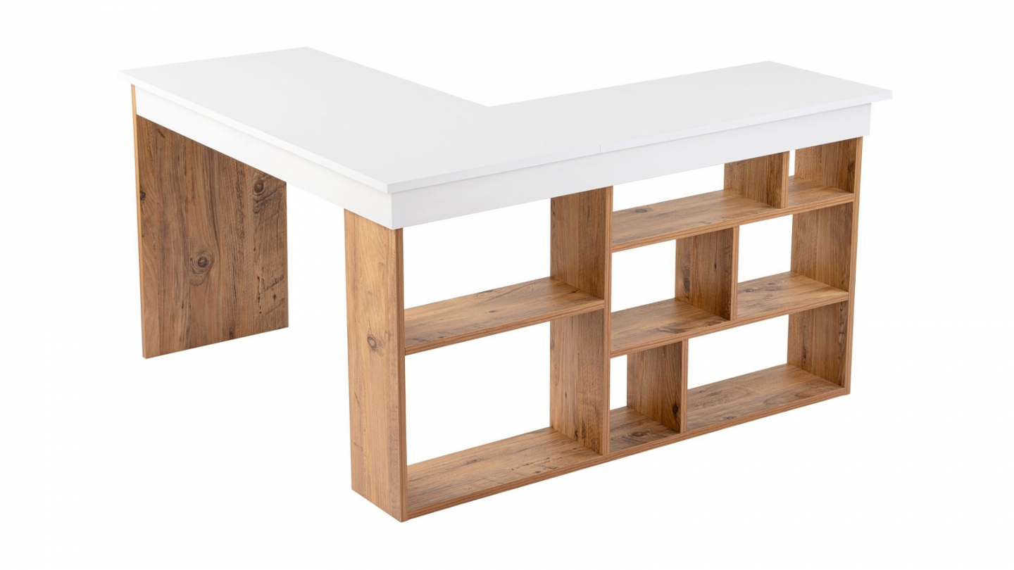 En stockBureau - Milan• Matière de la structure : Mélamine• Couleur : Blanc• Piètement en X avec étagères intégrées• Piètement en Pin massif couleur chêne - hauteur 72.5 cm• Rangements : 6 tablettes• Dimensions totales : 137 x 60 x 75,7 cm• Poids net : 29.05 kg• Dimensions des colis : Colis 1 : 150x67,5x9,2 cm / 32,5 kg