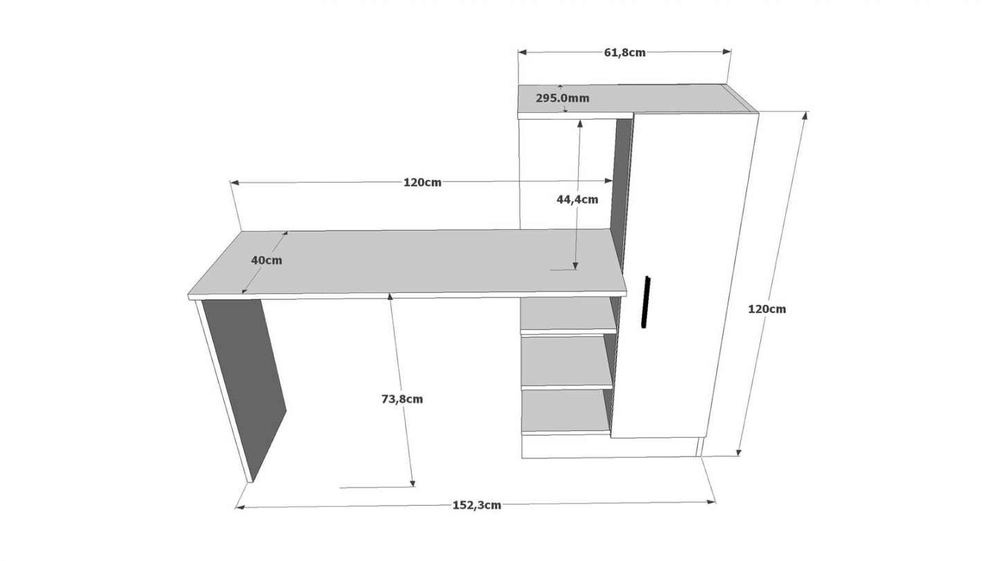 • Rangements : 3 tablettes sous le bureau - 1 colonne avec porte et 3 tablettes