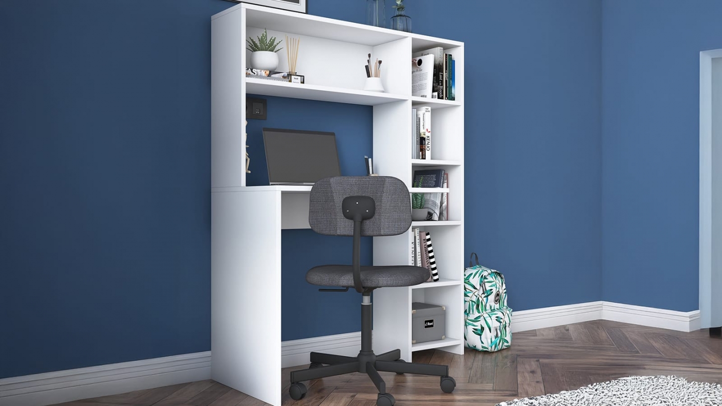 • Bureau compact avec rangements intégrés, idéal pour un espace de travail organisé grâce à ses nombreuses étagères et sa structure tout-en-un fonctionnelle.