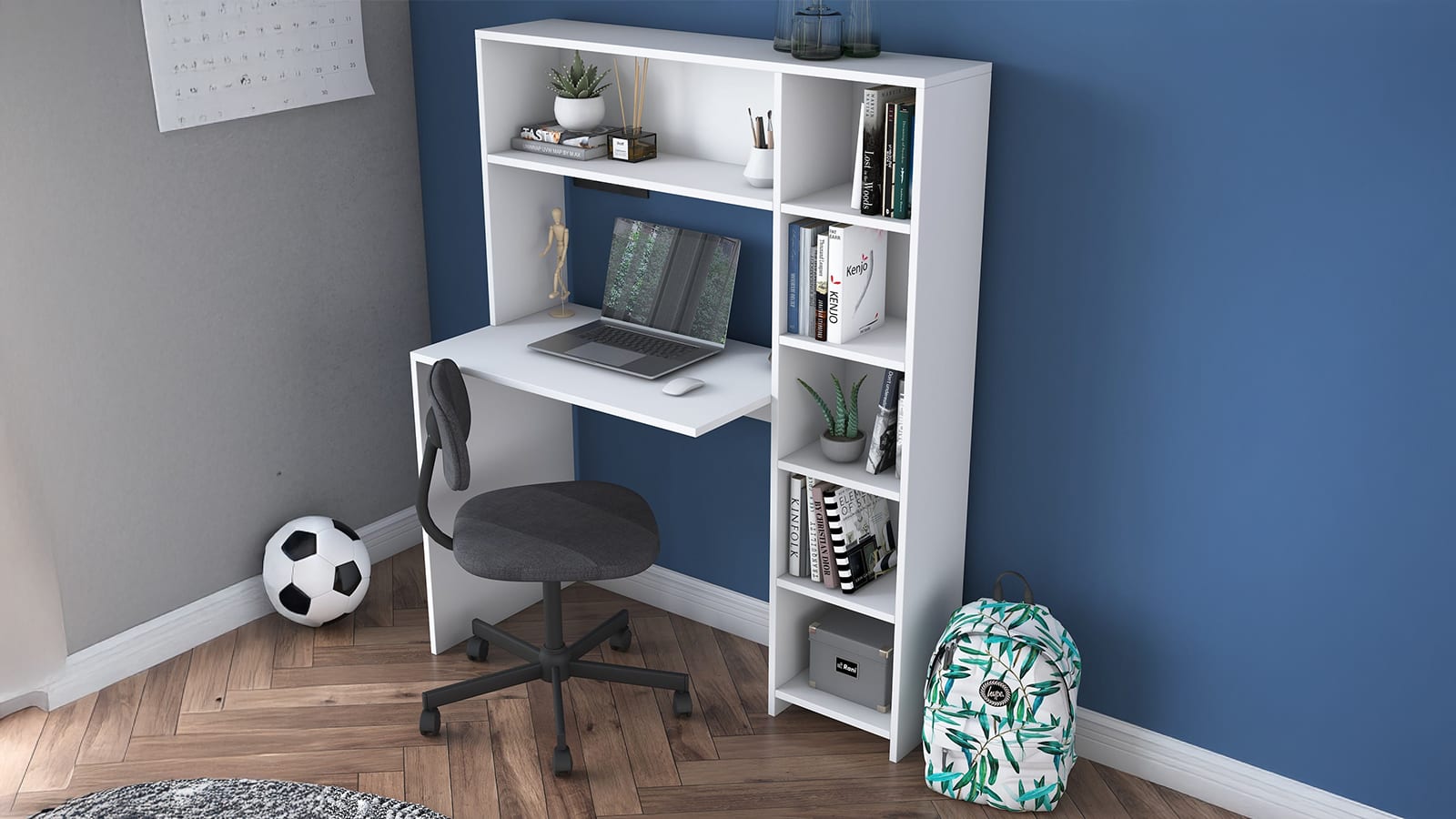 • Rangements : 1 colonne de rangement latérale avec 5 niches - 1 niche au dessu du bureau