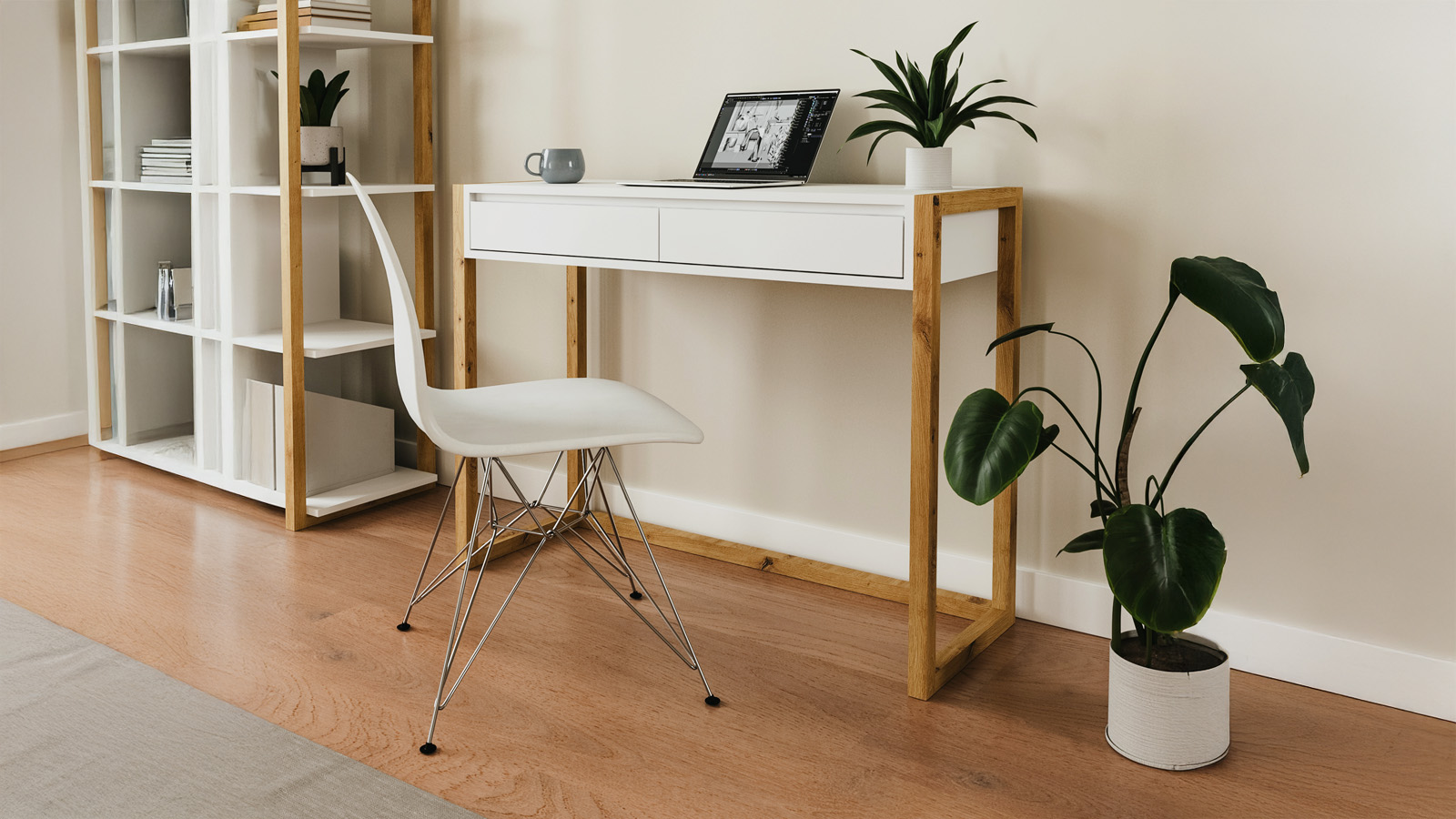 En stockBureau - Milan• Matière de la structure : Mélamine• Couleur : Blanc• Piètement en X avec étagères intégrées• Piètement en Pin massif couleur chêne - hauteur 72.5 cm• Rangements : 6 tablettes• Dimensions totales : 137 x 60 x 75,7 cm• Poids net : 29.05 kg• Dimensions des colis : Colis 1 : 150x67,5x9,2 cm / 32,5 kg