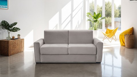 Revêtu de velours taupe, le canapé Andrea crée une atmosphère chaleureuse dans votre espace, transformant votre salon en un vrai petit cocon. Son matelas épais de 22 cm garantit des nuits réparatrices pour un confort optimal.