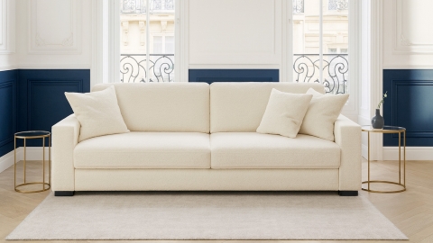 Canapé convertible 3 places en tissu bouclette beige