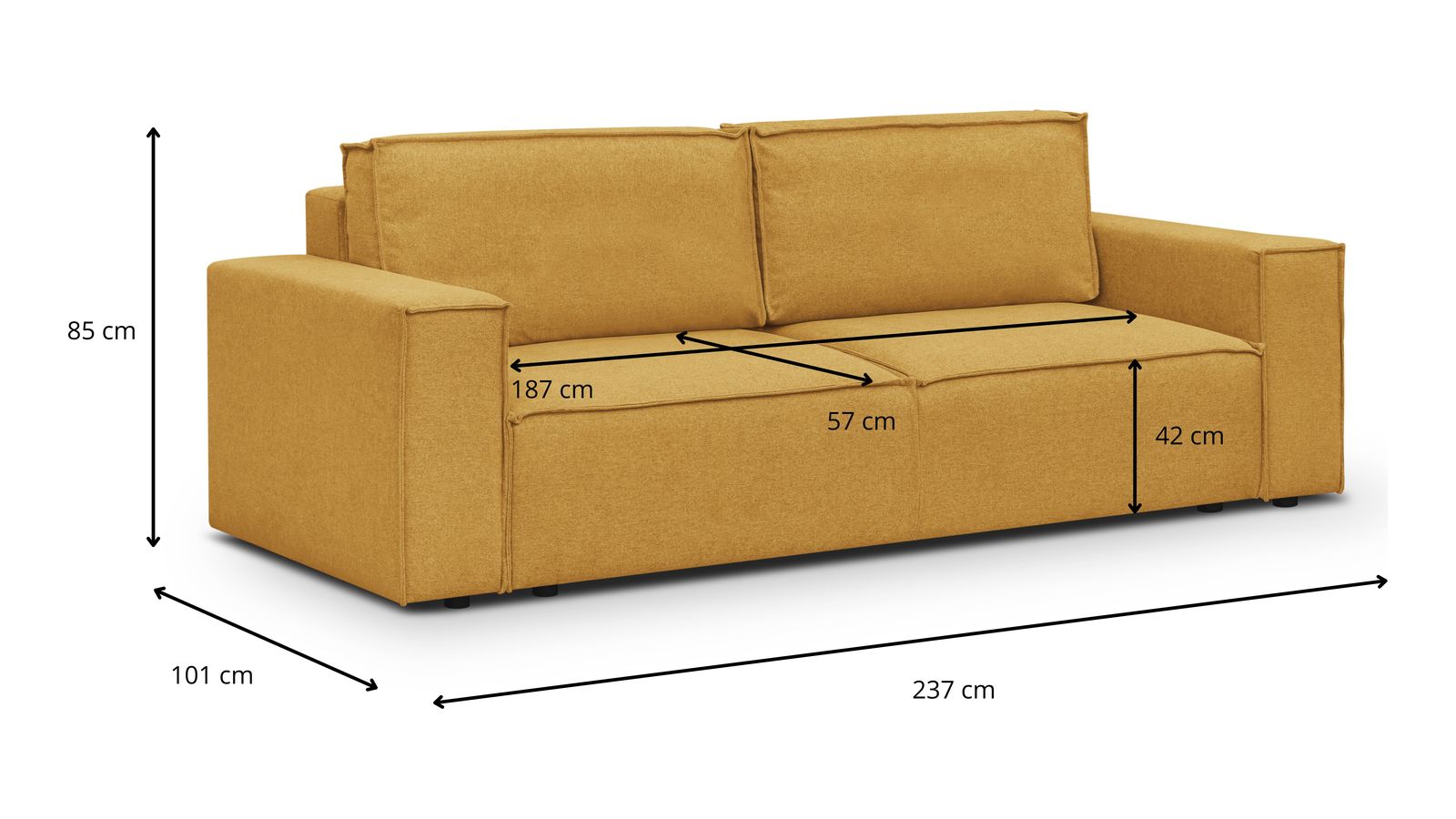Canapé 3 places en velours côtelé jaune moutarde • Confort : équilibré : accueil moelleux, soutien ferme • Couleur : jaune moutarde • Revêtement : velours côtelé - certifié Oekotex - Petfriendly • Coffre de rangement sous l'assise, pratique pour ranger plaid, couettes etc.. • Structure en bois certifié • Une assise renforcée avec ressorts...