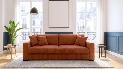 Découvrez notre canapé convertible 3 places en velours côtelé rouille Robin, qui ajoutera une touche moderne et confortable à votre intérieur !
