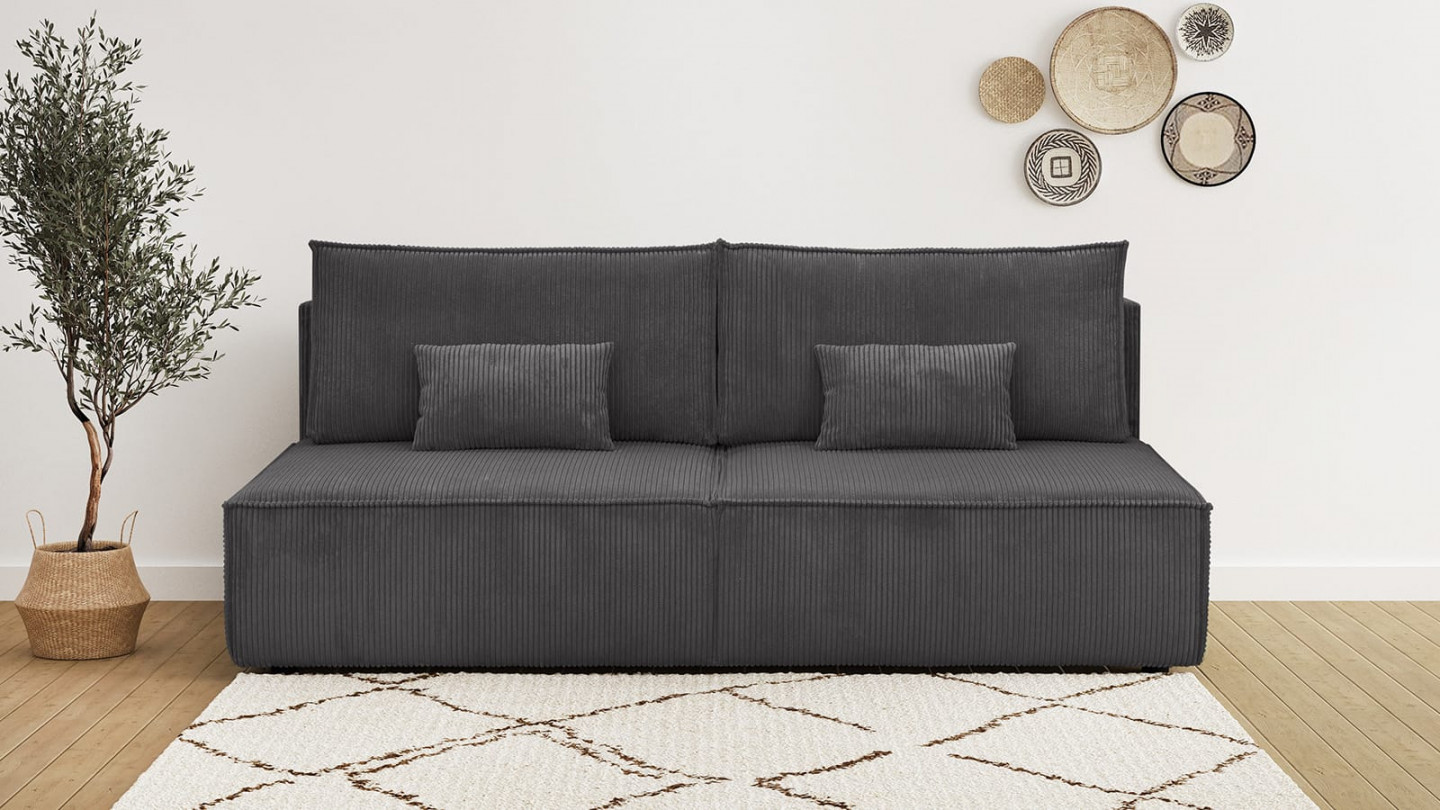 Découvrez notre superbe canapé convertible 3 places de la collection Milla , conçu spécialement pour apporter charme et élégance à votre salon. Revêtu d'un somptueux tissu en velours côtelé gris anthracite, ce canapé vous invite à plonger dans un univers de confort et de style incomparable.