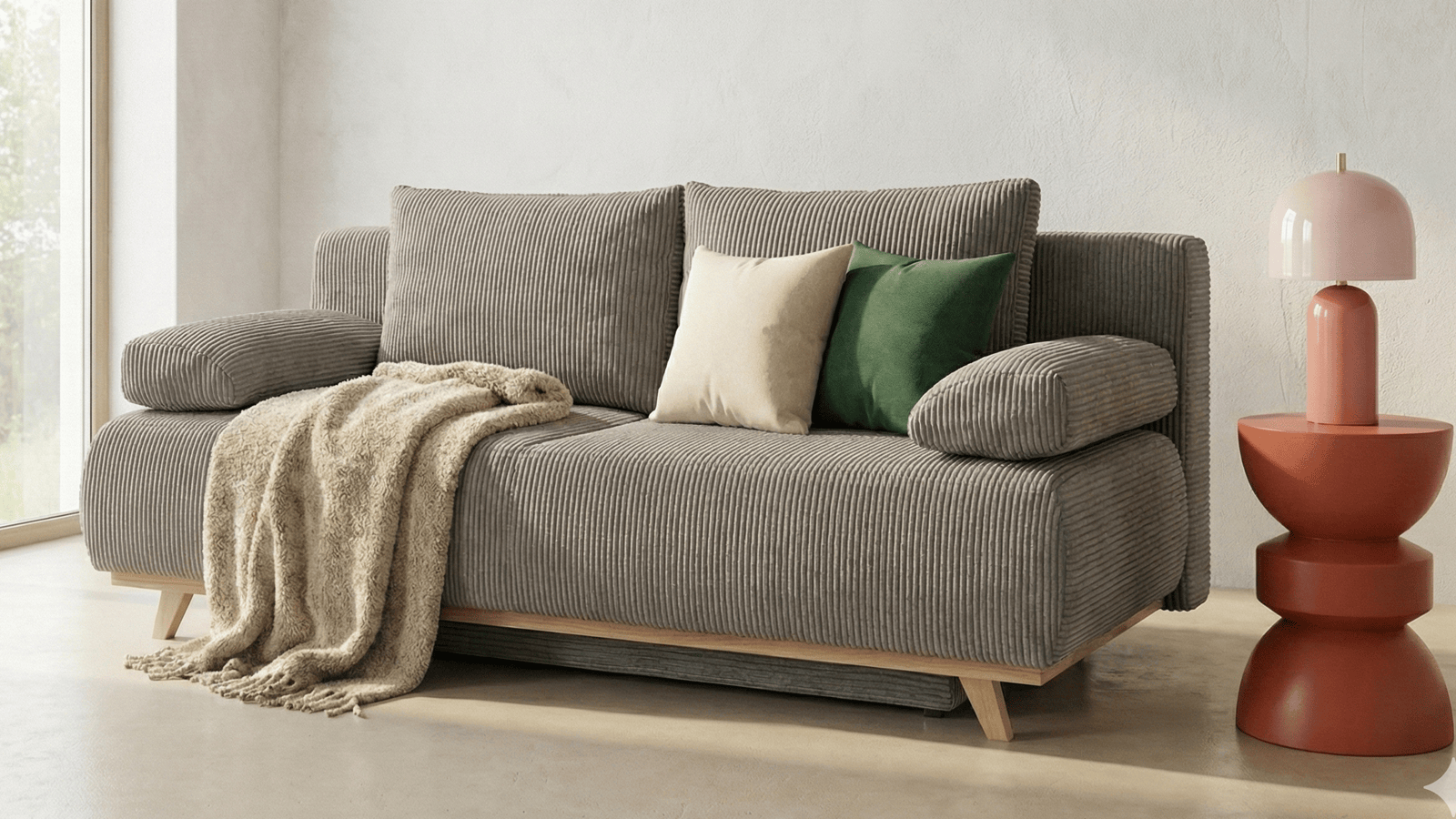 En velours côtelé taupe, il vous offre une texture douce au toucher, tout en étant facile à entretenir.