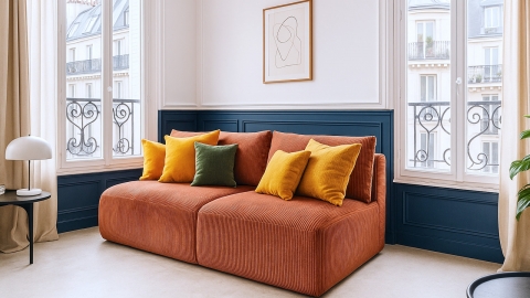Pourquoi choisir entre style, confort et fonctionnalité ? Avec notre canapé Jasper, vous n'avez plus à faire de compromis. Ce canapé convertible 3 places en velours côtelé rouille 100% polyester, certifié Oekotex, apporte une touche de douceur à votre intérieur.