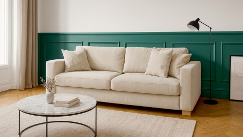 Canapé confortable aussi bien en assise qu'en couchage occasionnel.