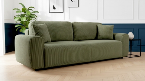 Canapé convertible 3 places en velours côtelé vert kaki - Grazia