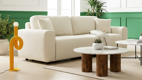 Canapé convertible 3 places en velours côtelé beige - Grazia