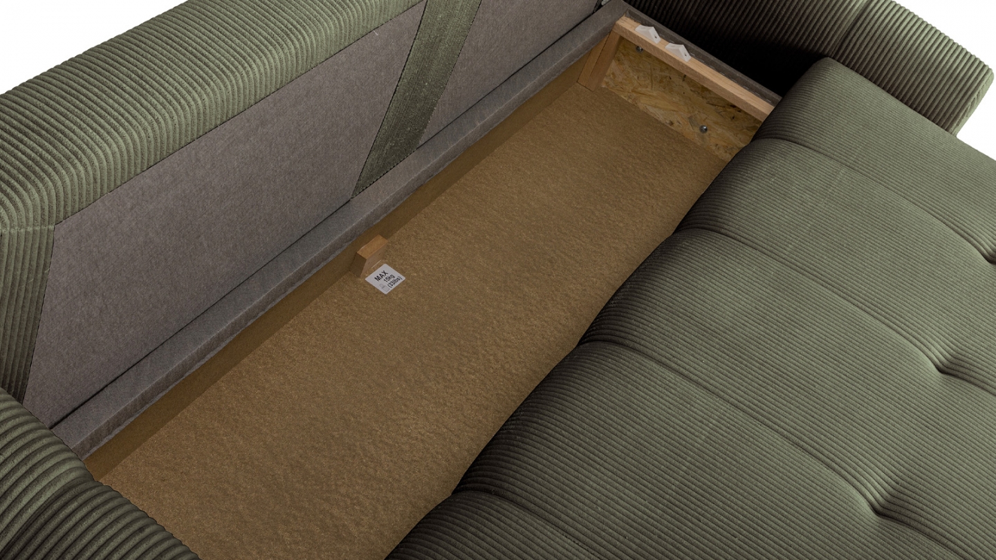Canapé d'angle à gauche convertible en velours côtelé vert kaki • Confort : équilibré : accueil moelleux, soutien ferme • Couleur : kaki • Revêtement : velours côtelé - certifié Oekotex - tissu Petfriendly • Angle à gauche : se détermine lorsqu'on est face au canapé • Coffre de rangement sous l'assise, pratique pour ranger plaid, couettes etc.. •...