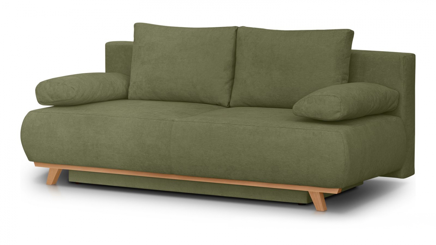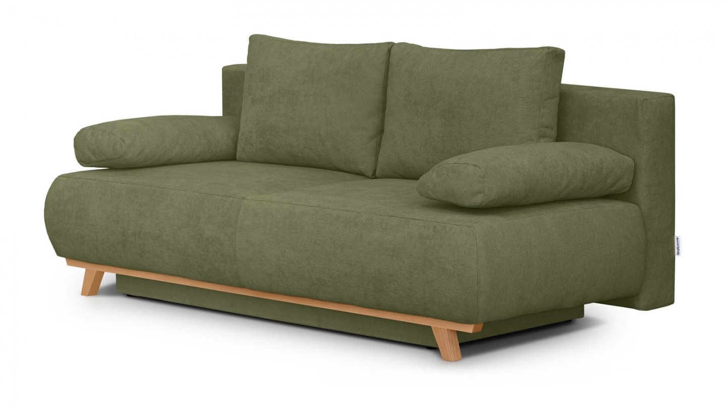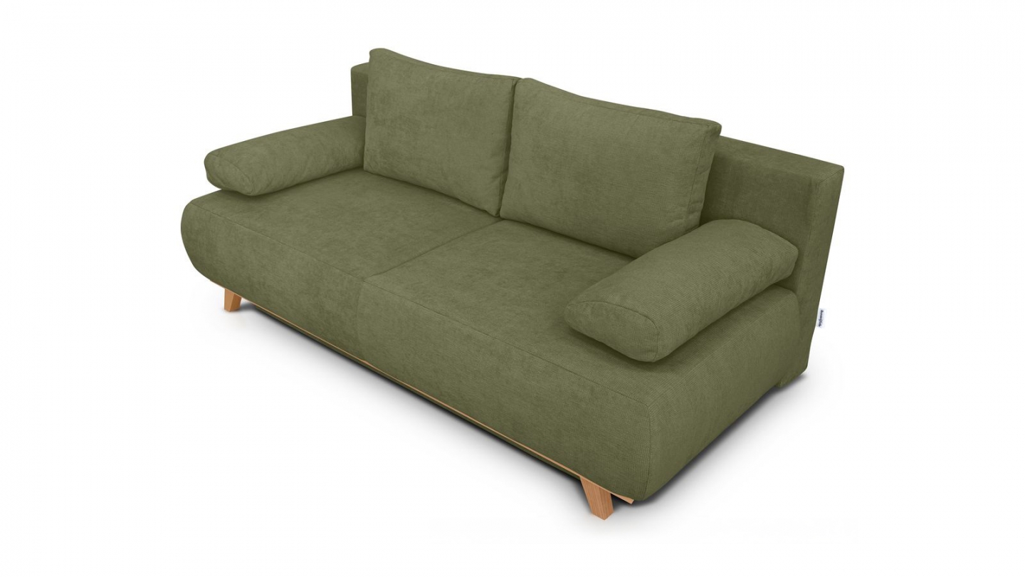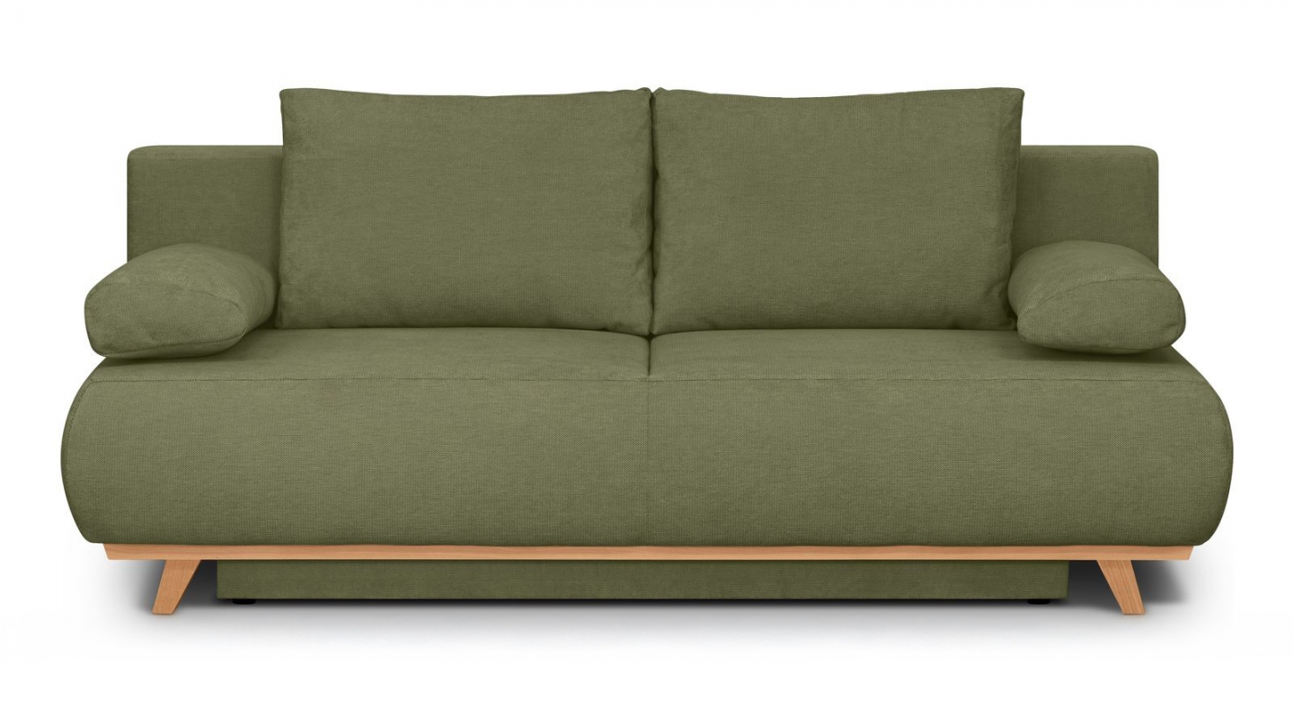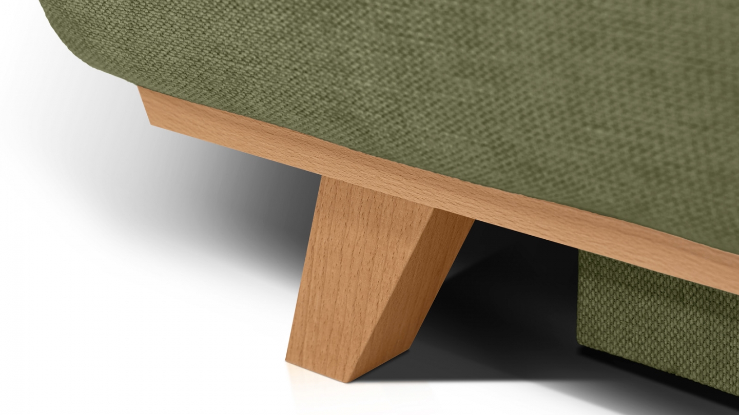 Canapé 3 places en velours vert olive • Confort : équilibré : accueil moelleux, soutien ferme • Couleur : vert olive • Revêtement : velours - certifié Oekotex • Coffre de rangement sous l'assise, pratique pour ranger plaid, couettes etc.. • Structure en bois certifié • Une assise renforcée avec ressorts métalliques plats pour un meilleur soutien, plus de...