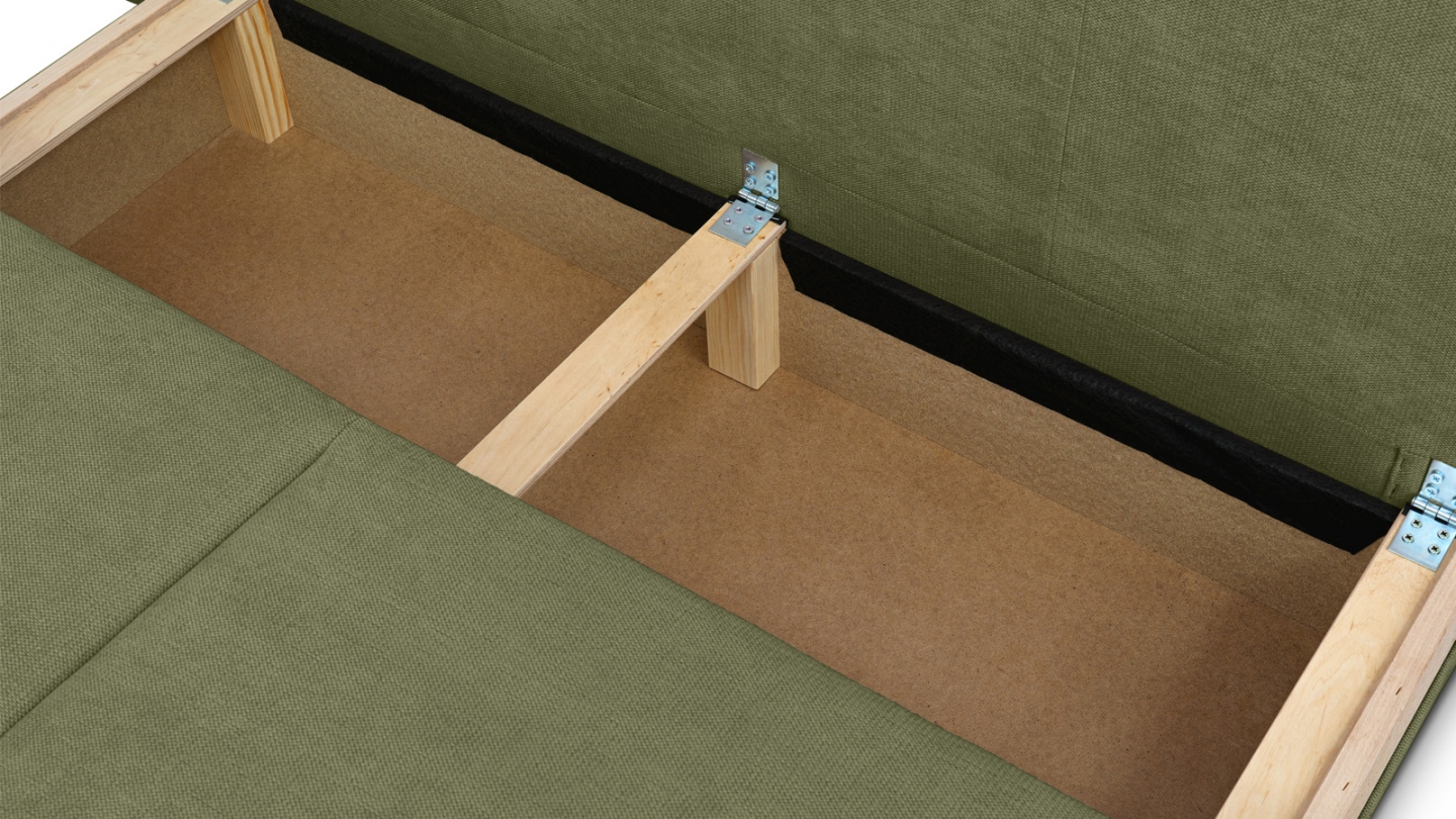 • Coffre de rangement sous l'assise, pratique pour ranger plaid, couettes etc..
