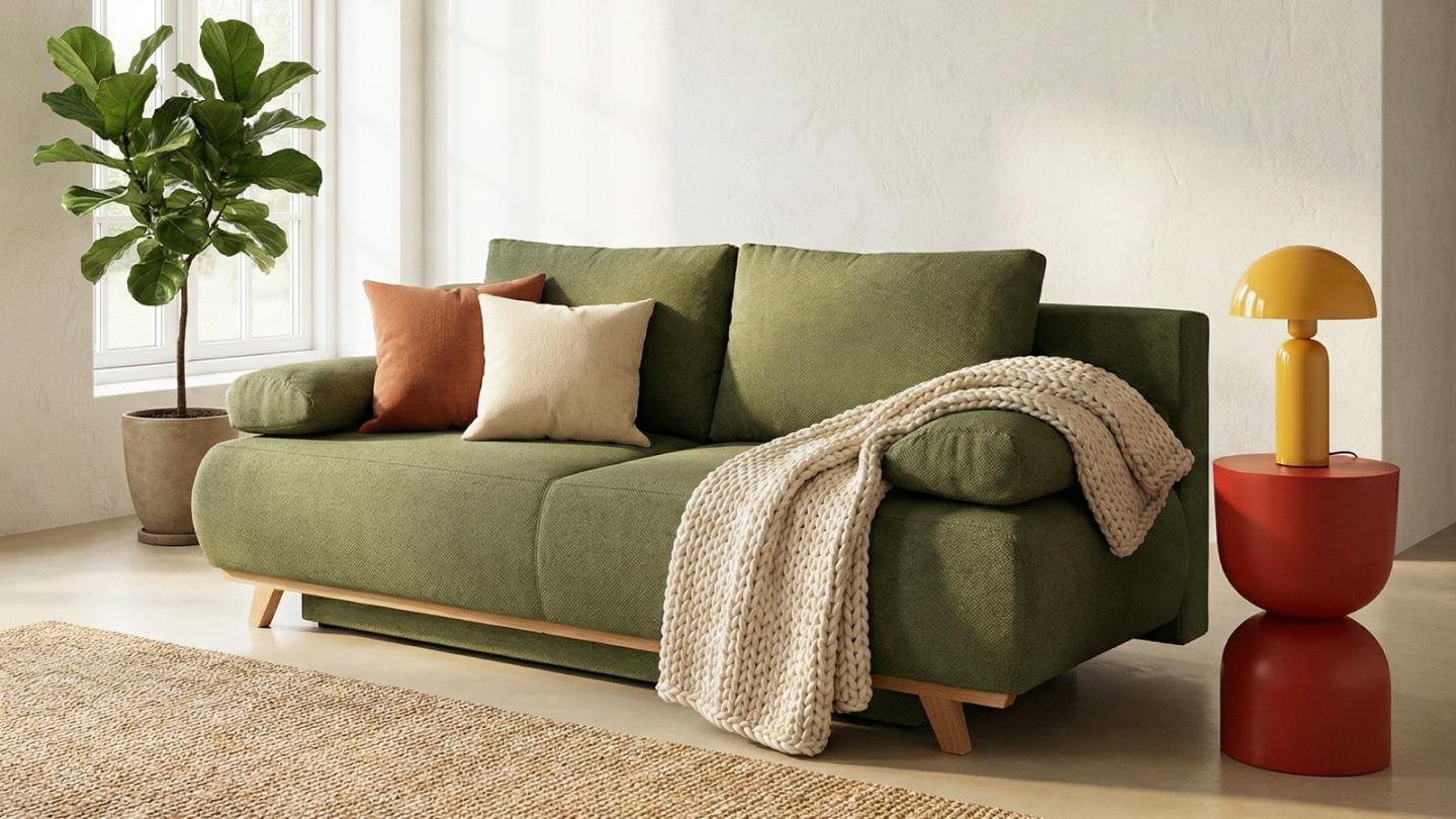 Canapé 3 places en tissu chenille vert olive