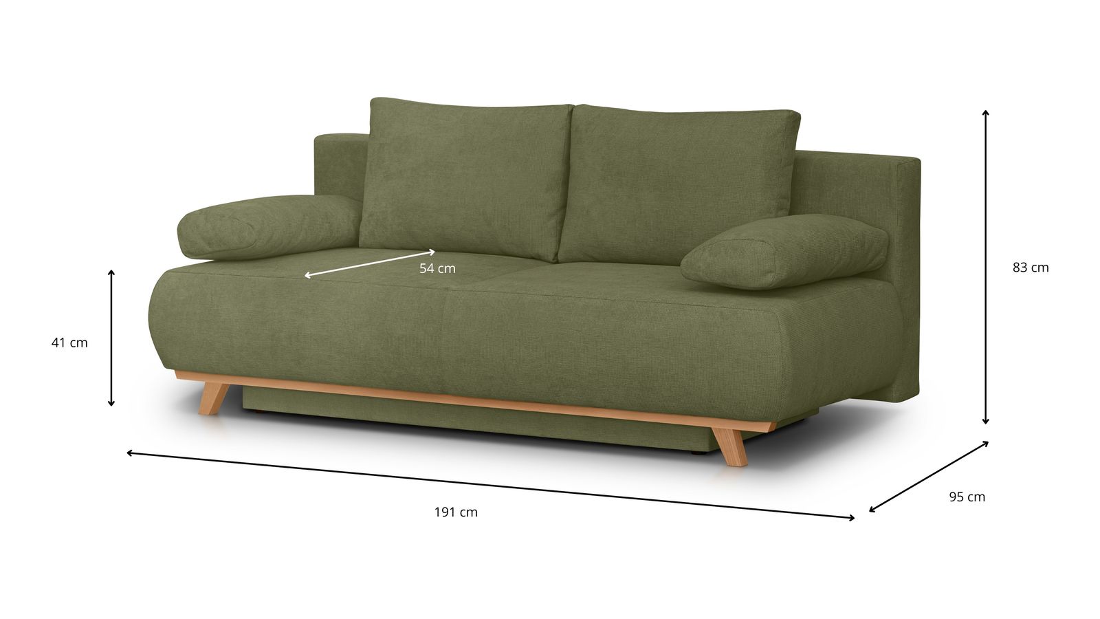 • Largeur de l'assise : 191 cm - Hauteur de l'assise : 41 cm - Profondeur de l'assise : 95 cm