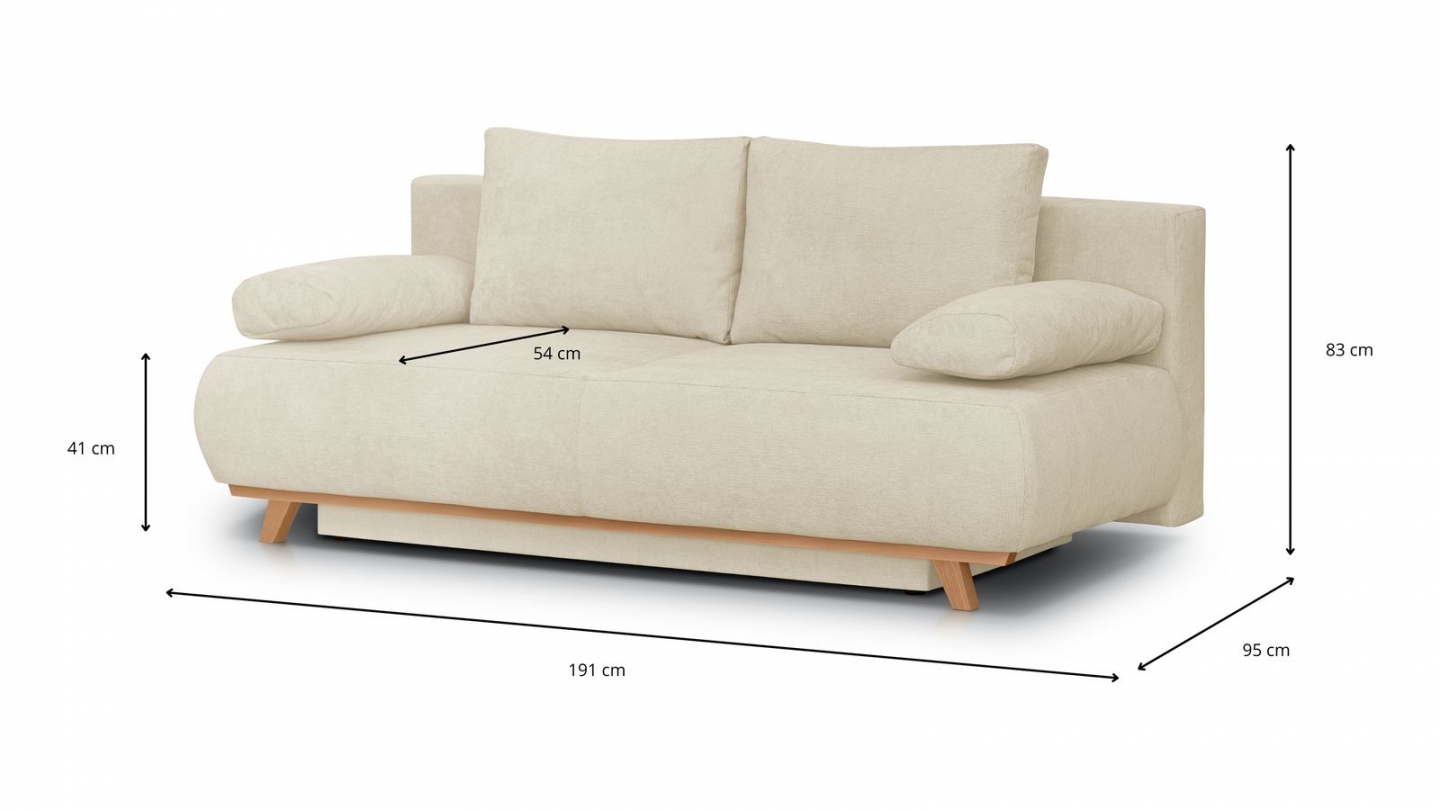 • Largeur de l'assise : 191 cm - Hauteur de l'assise : 41 cm - Profondeur de l'assise : 95 cm